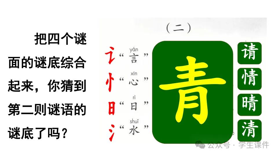 当前位置:首页>课件>PPT课件 识字4.猜字谜 (一年级语文下册)