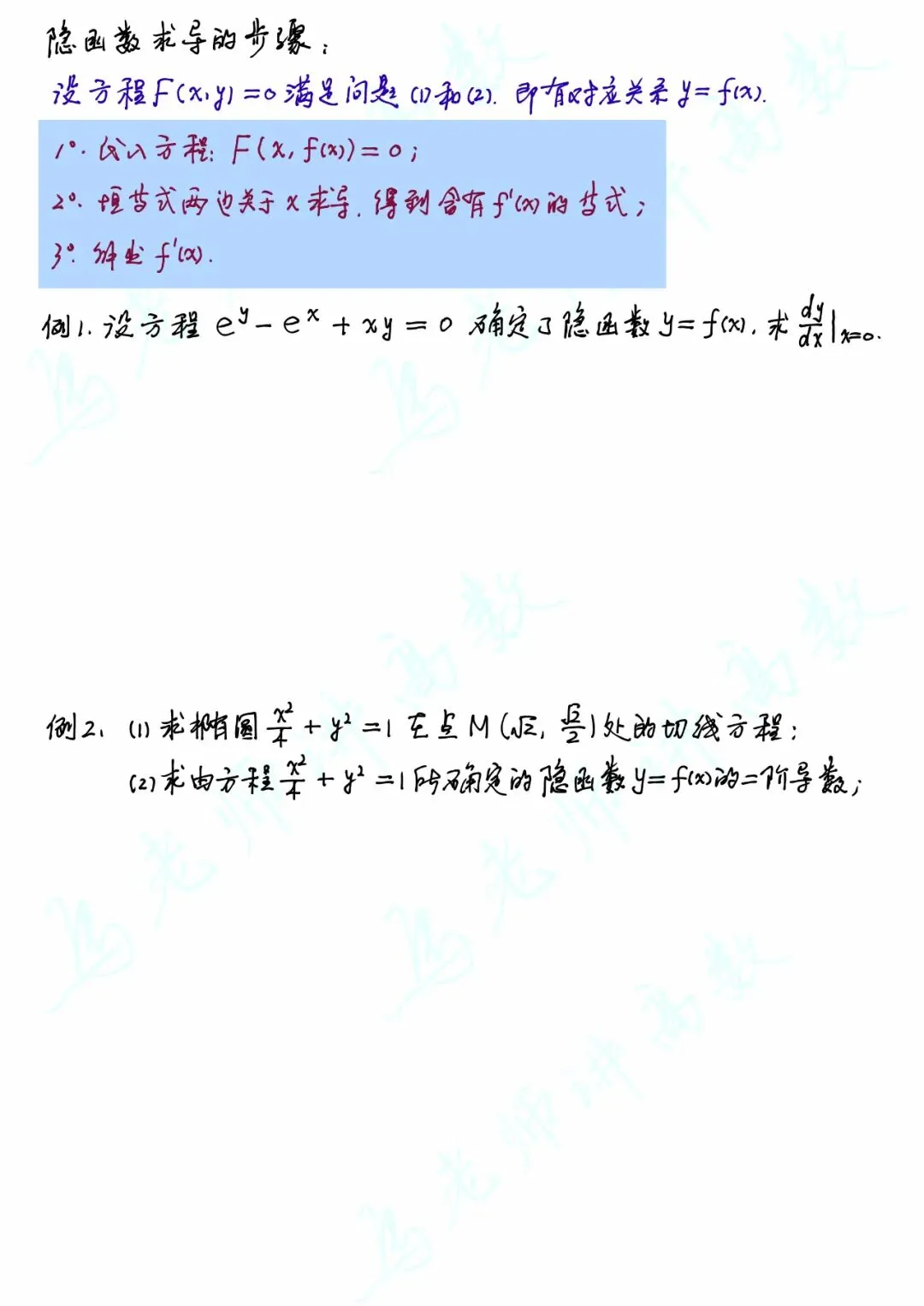 1、隐函数求导:重点练习等式两边求导后,正确解出 dy/dx 的代数过程。确保链式法则运用熟练。