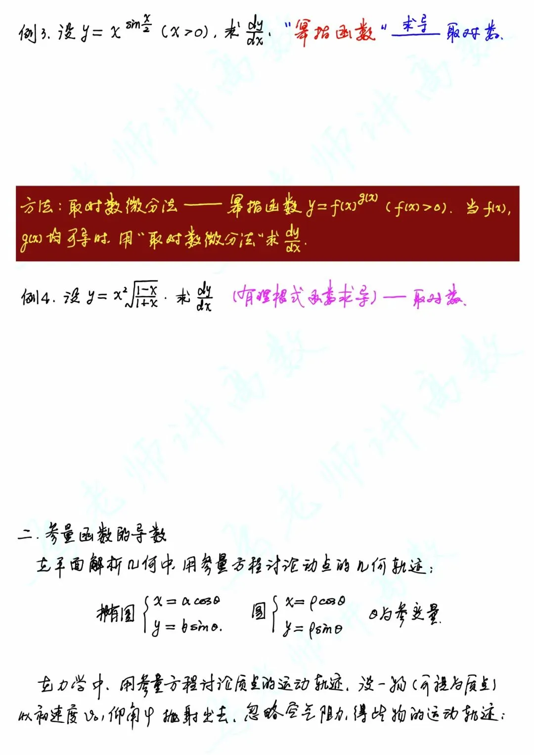 2、参数方程求导:重点练习二阶导的计算,这是高频考点。严格按照公式 [d(dy/dx)/dt] / (dx/dt) 一步步计算,不要跳步。