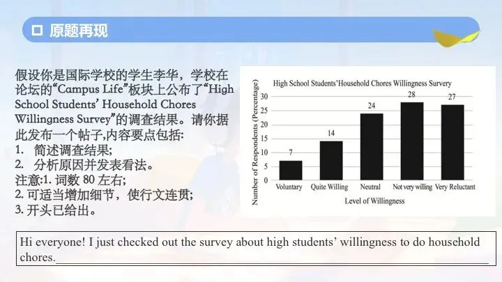 Hi everyone! I just checked out the survey about high students' willingness to do household chores. Surprisingly, more than half of the students—28% are not very willing and 27% are very reluctant—show little interest in helping out at home. The results are quite thought-provoking.