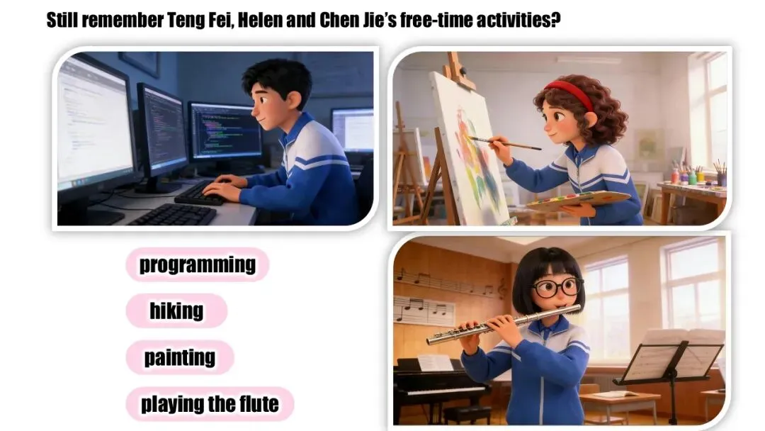 本文展示Unit 1 Time to relax课件节选。全单元一共五个课件,具体划分请见每个课时第一张图片。如需查看完整课件和播放效果,请前往小红书搜索“Eva超会教英语”。获取方式也在那边。请勿在此留言或私信,不看不回!!!