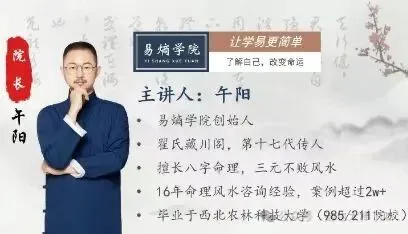 午阳老师,原名翟贽礼,是易熵学院院长,国学讲师。家传八字命理,一直潜心研习易学,对八字有着独到见解,从业20多年的时间,早期也追随过名师进行系统学习,游历名山大川,实战经验丰富。