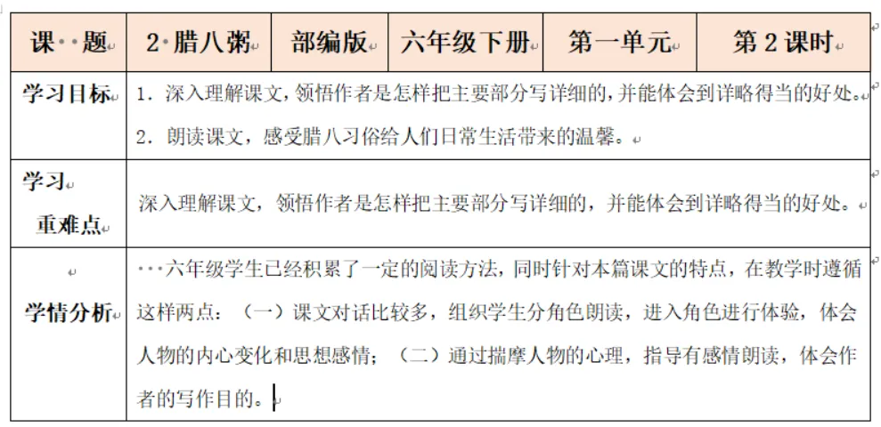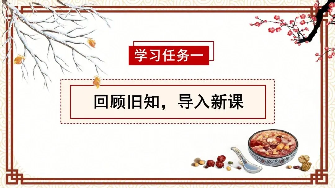 5.教师小结(结尾写作的特色):作者通过详细描写喝粥后的画面,让人仿佛看到了一家人喝粥时的香甜和满足,这样的结尾更有余味,显示出作者的匠心独运。