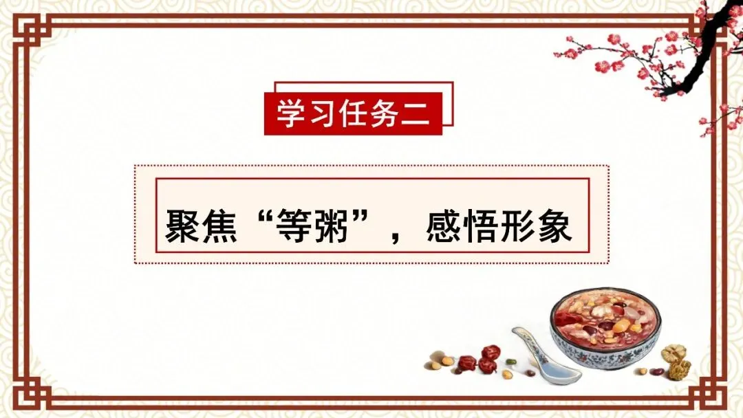 教师明确:之所以把“等粥”写得如此详细,就是因为这部分能够把这种期待和喜爱之情表现得特别充分。