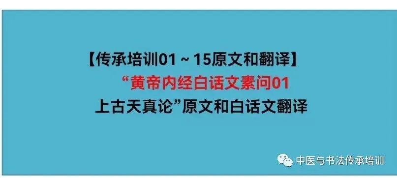 【传承培训01~15原文和翻译】“黄帝内经白话文素问01上古天真论”原文和白话文翻译,扫二维码,共同推动中医进社区、进学校工作