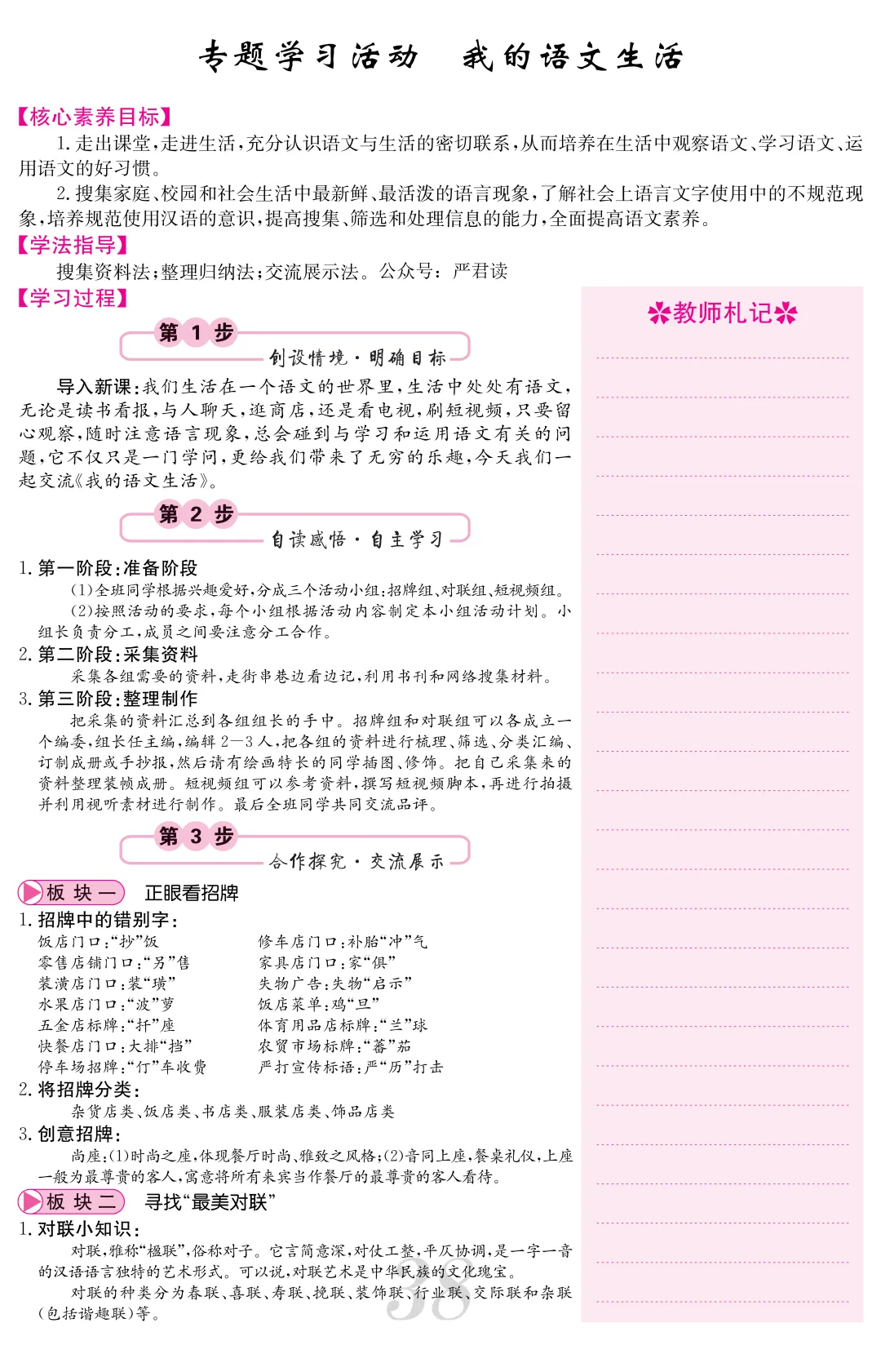 七上专题学习:信息提取+图画表述+标语对联+活动策划