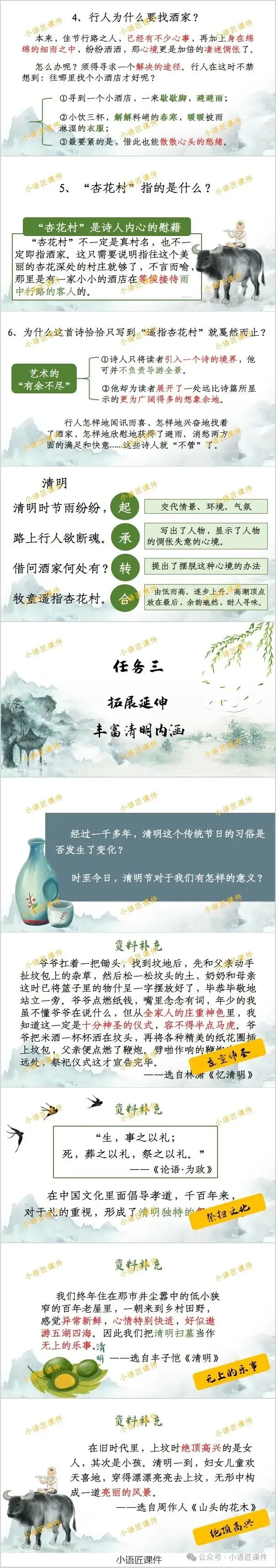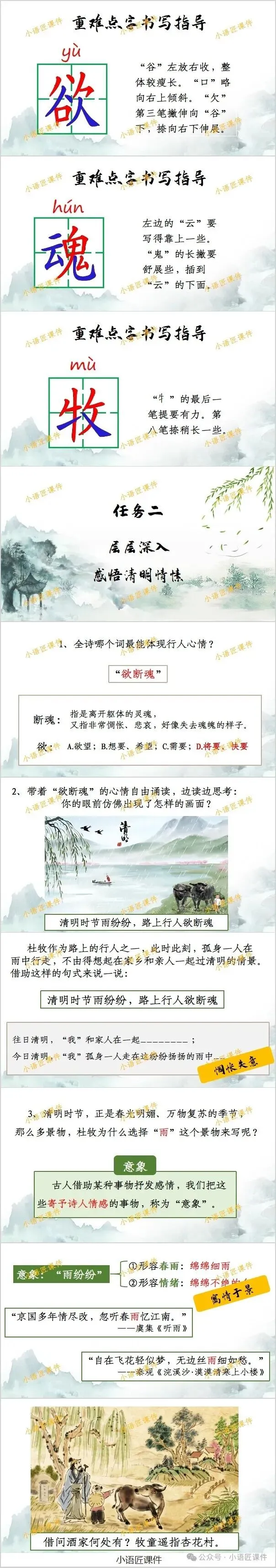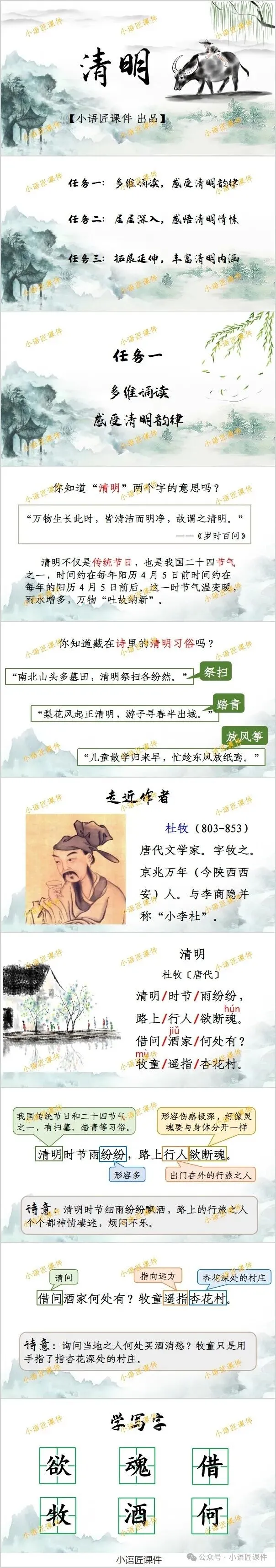 大家好,我是小语匠课件!今天给大家分享三年级下册《清明》《古诗三首》的独家课件。