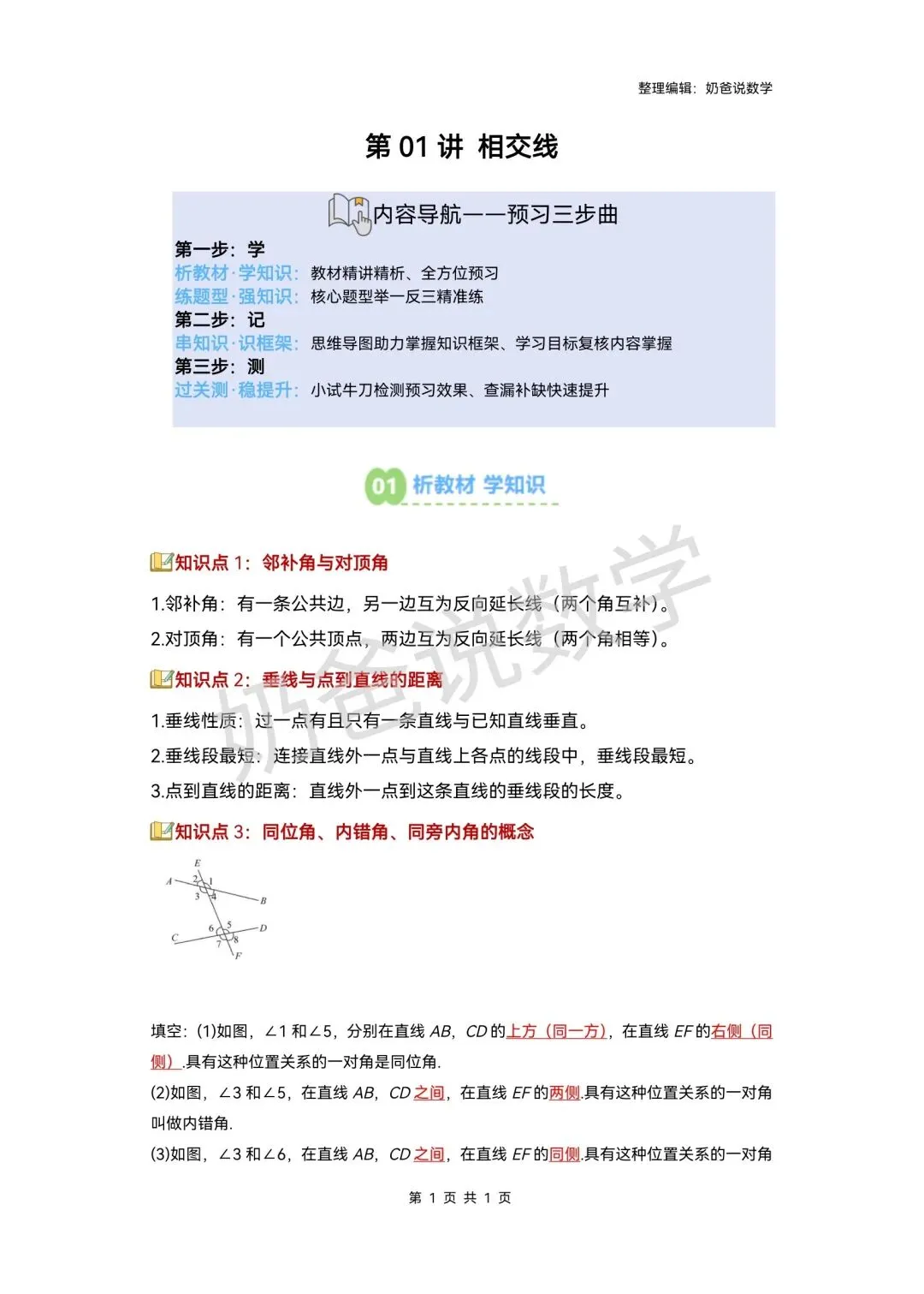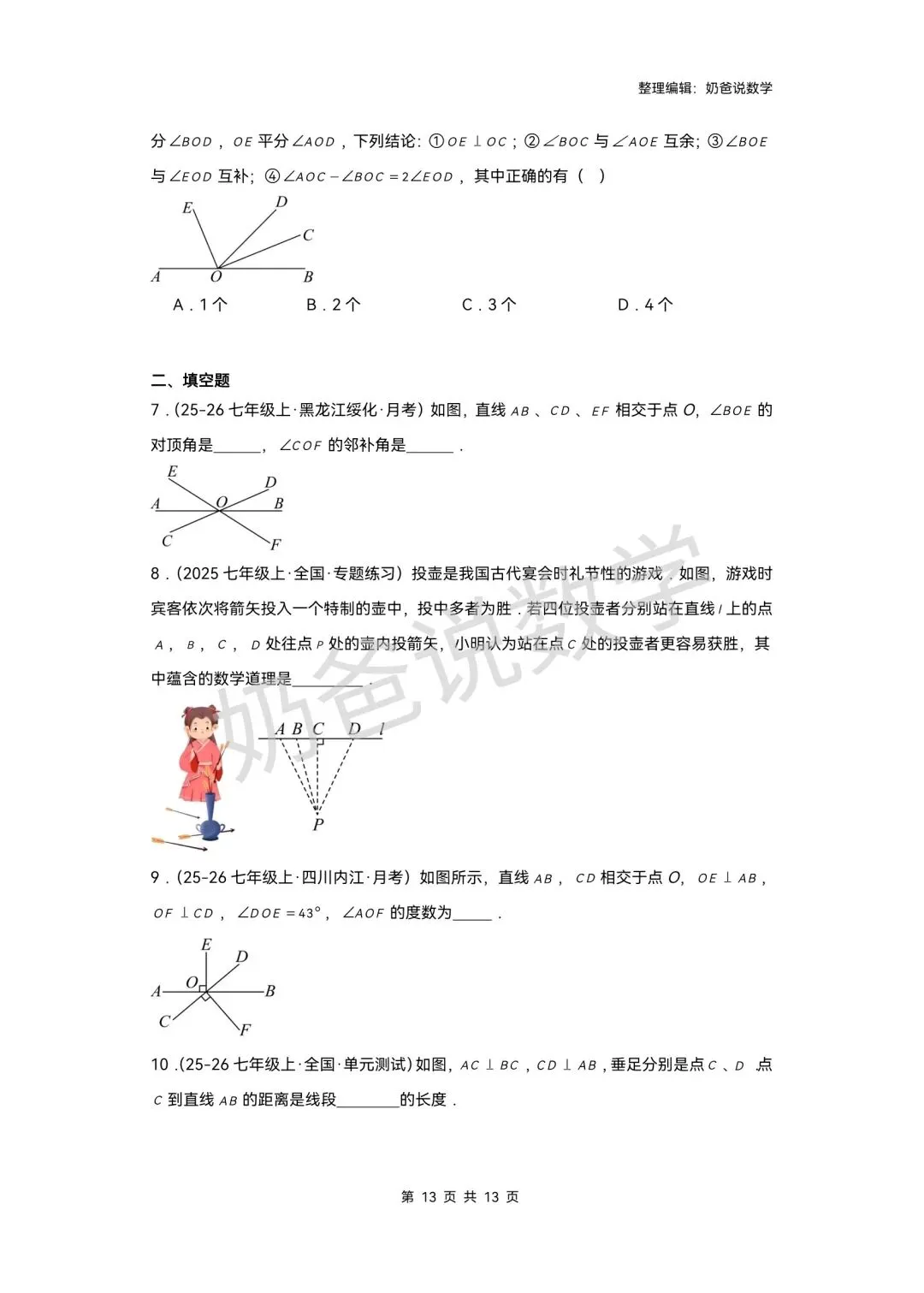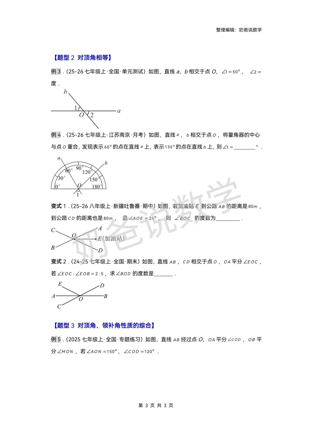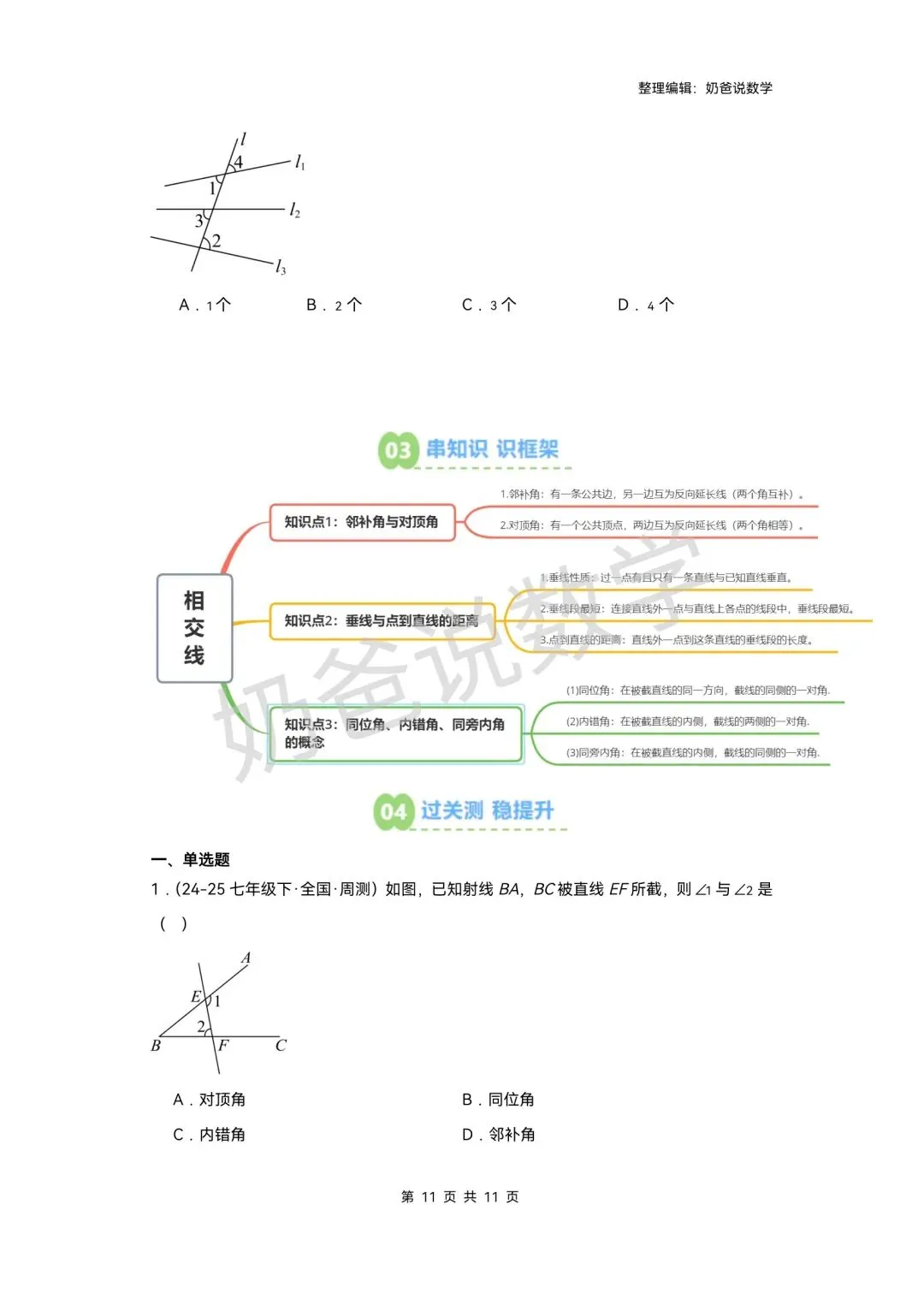 >寒假预习讲义|七下数学第1讲相交线(含答案)