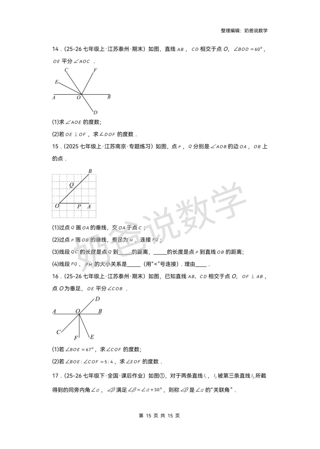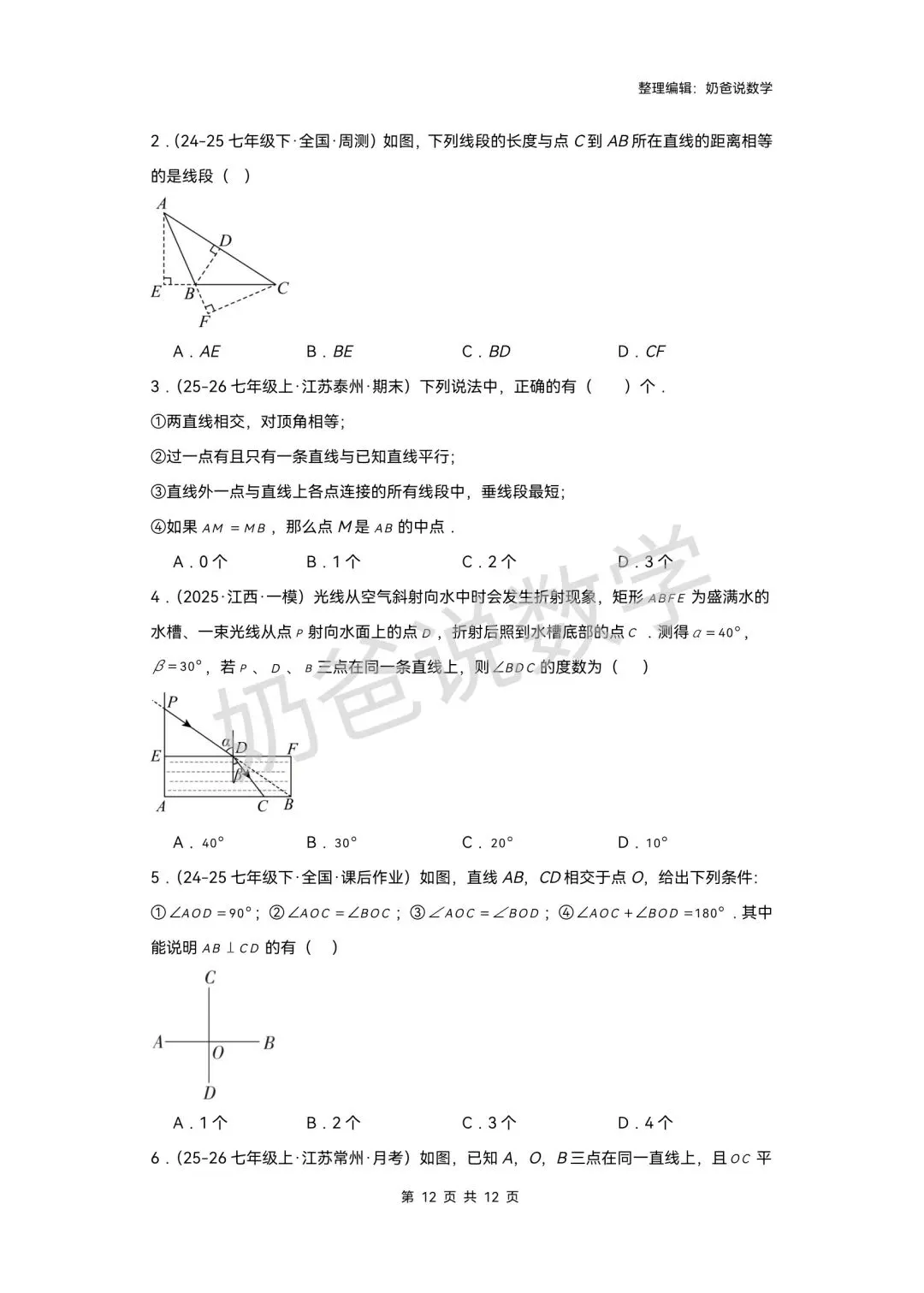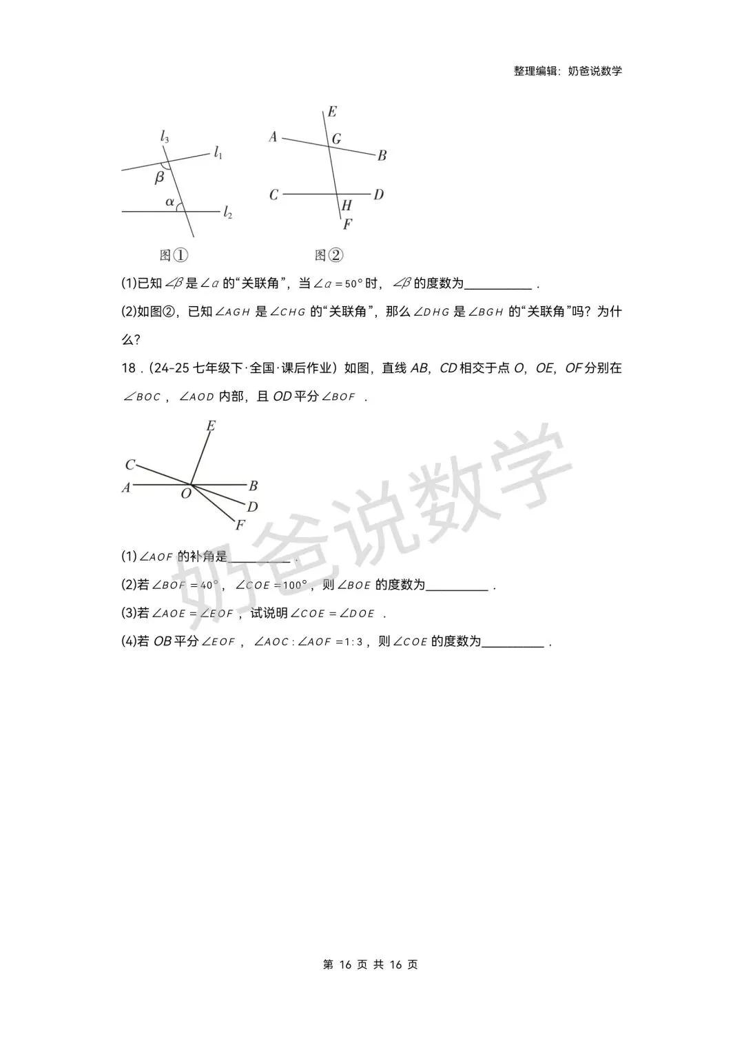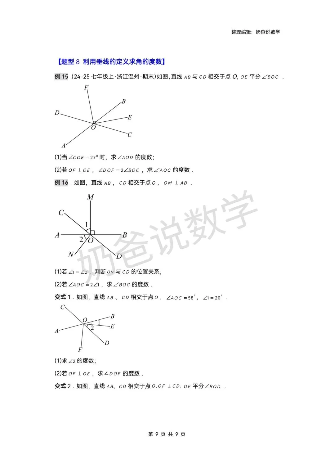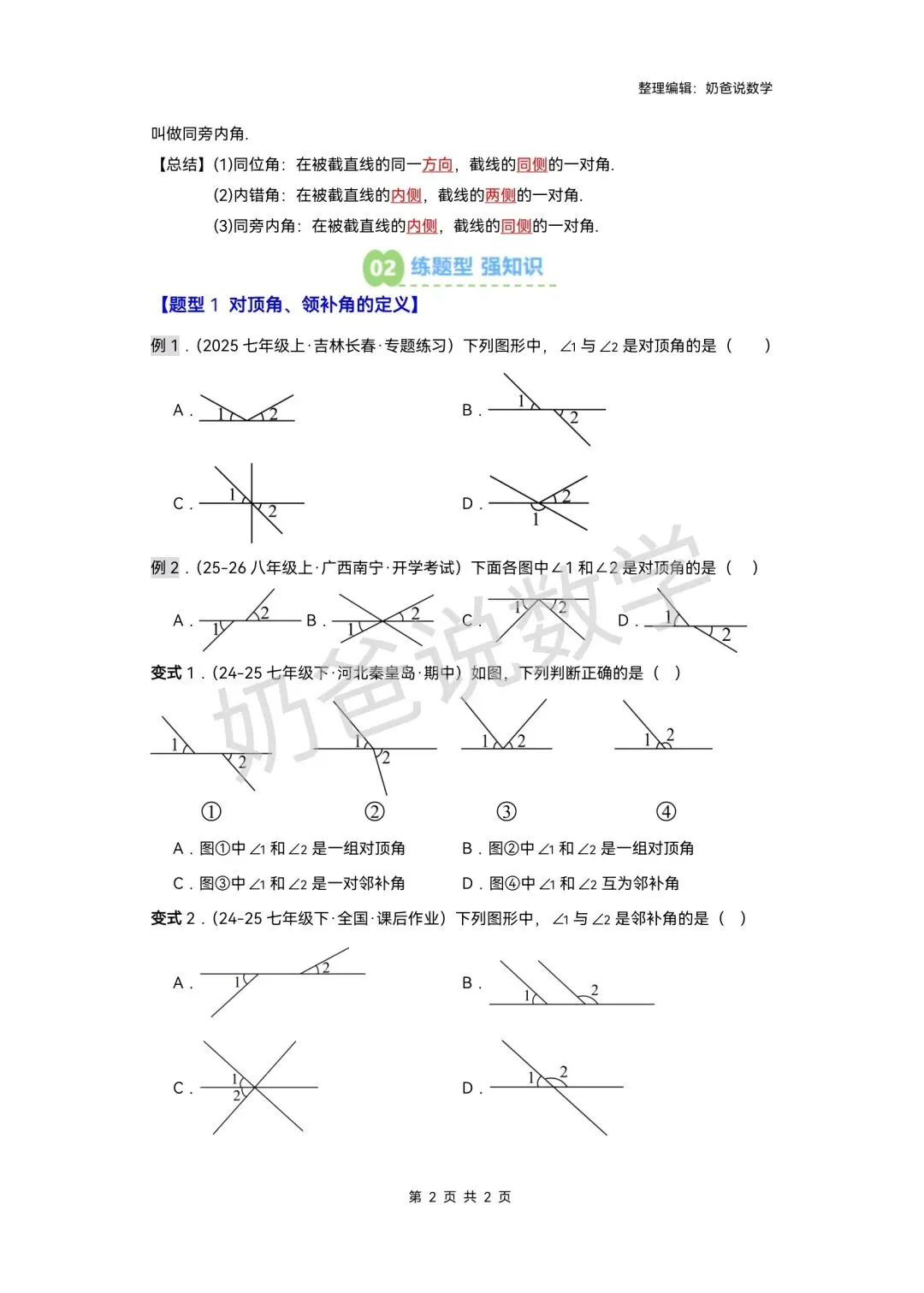 >寒假预习讲义|七下数学第1讲相交线(含答案)