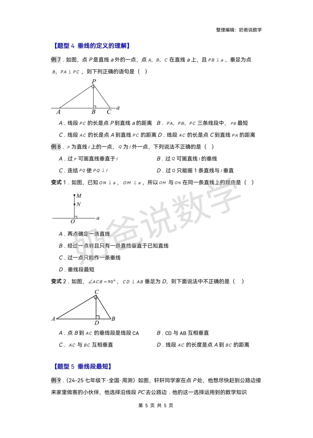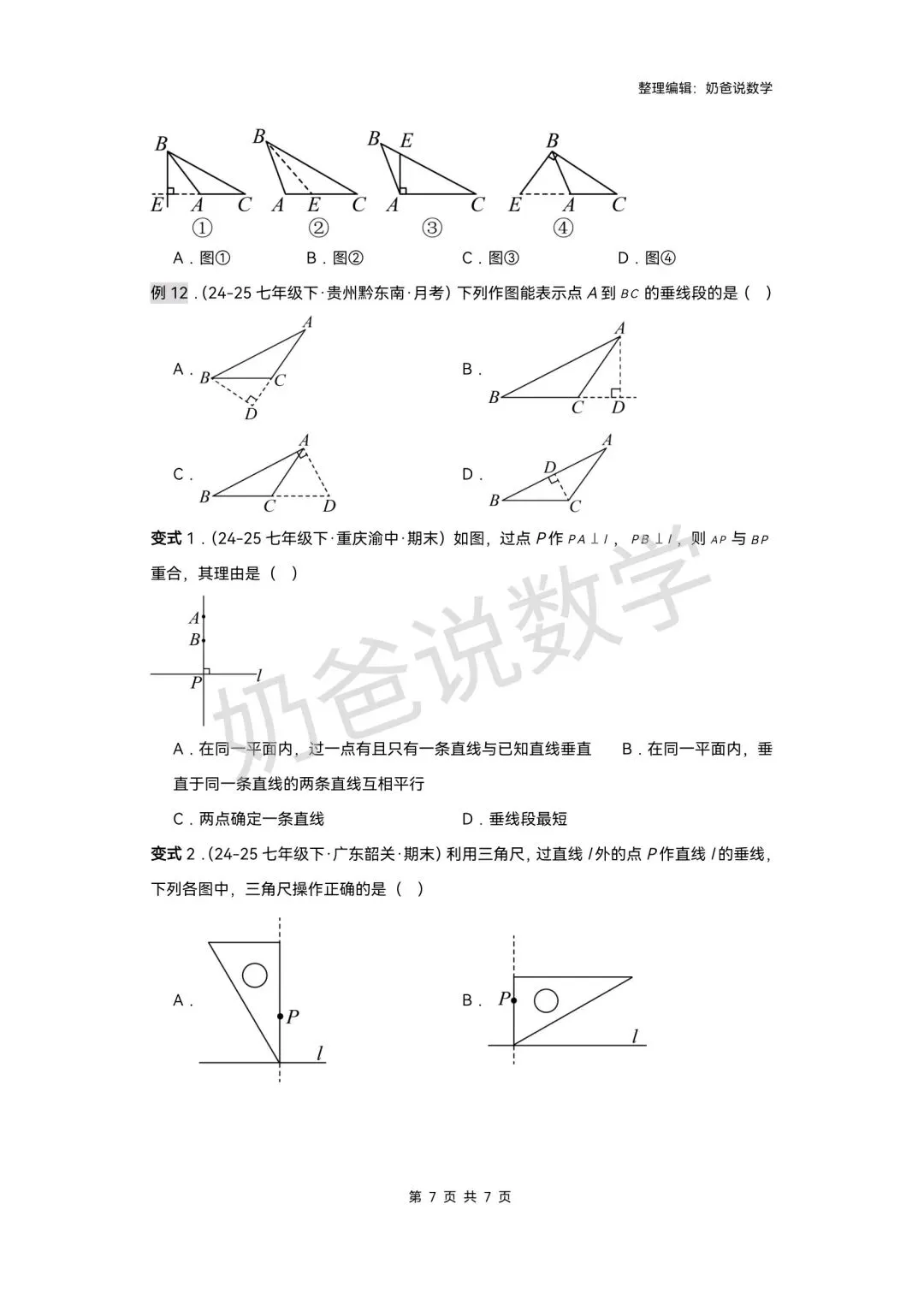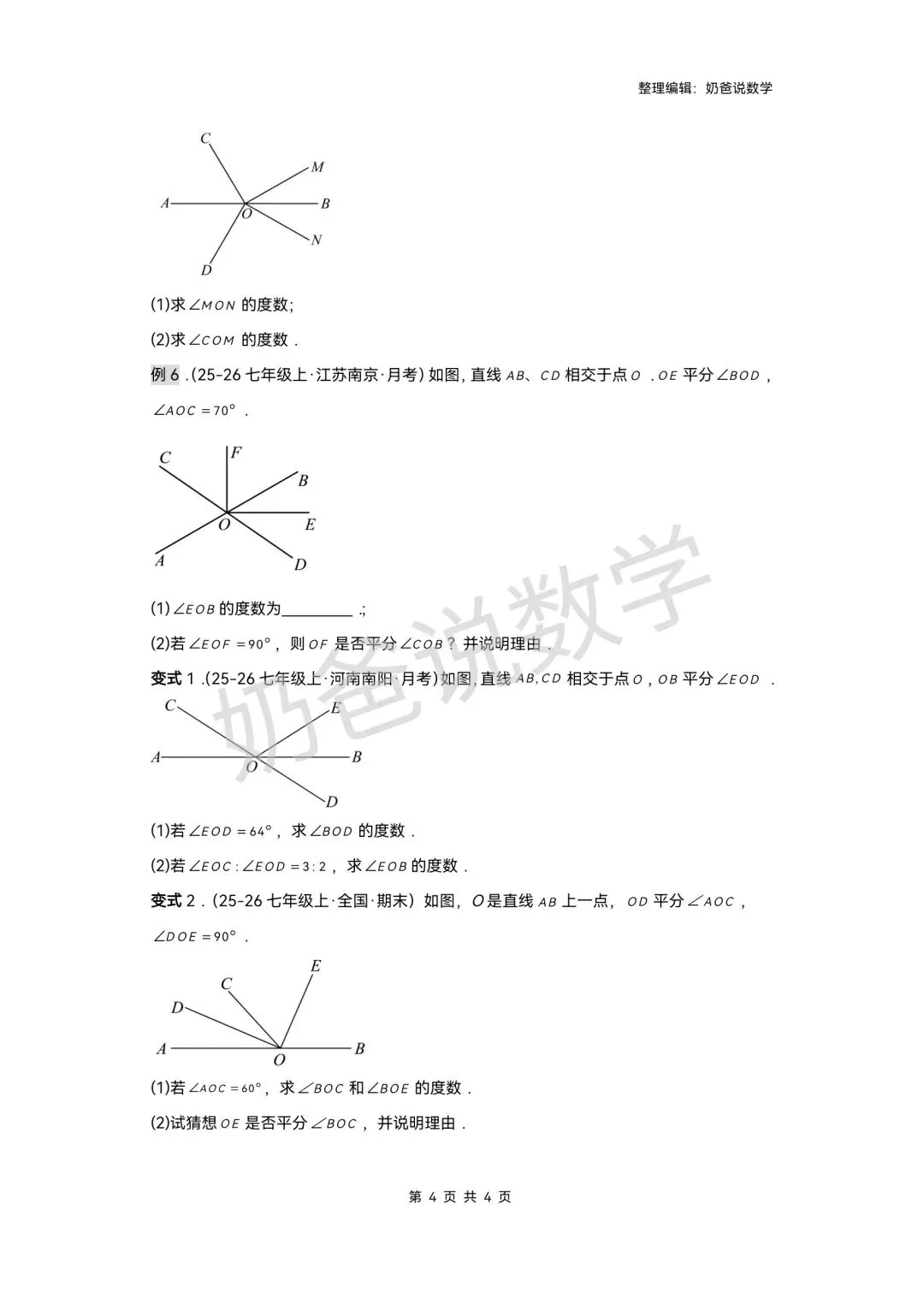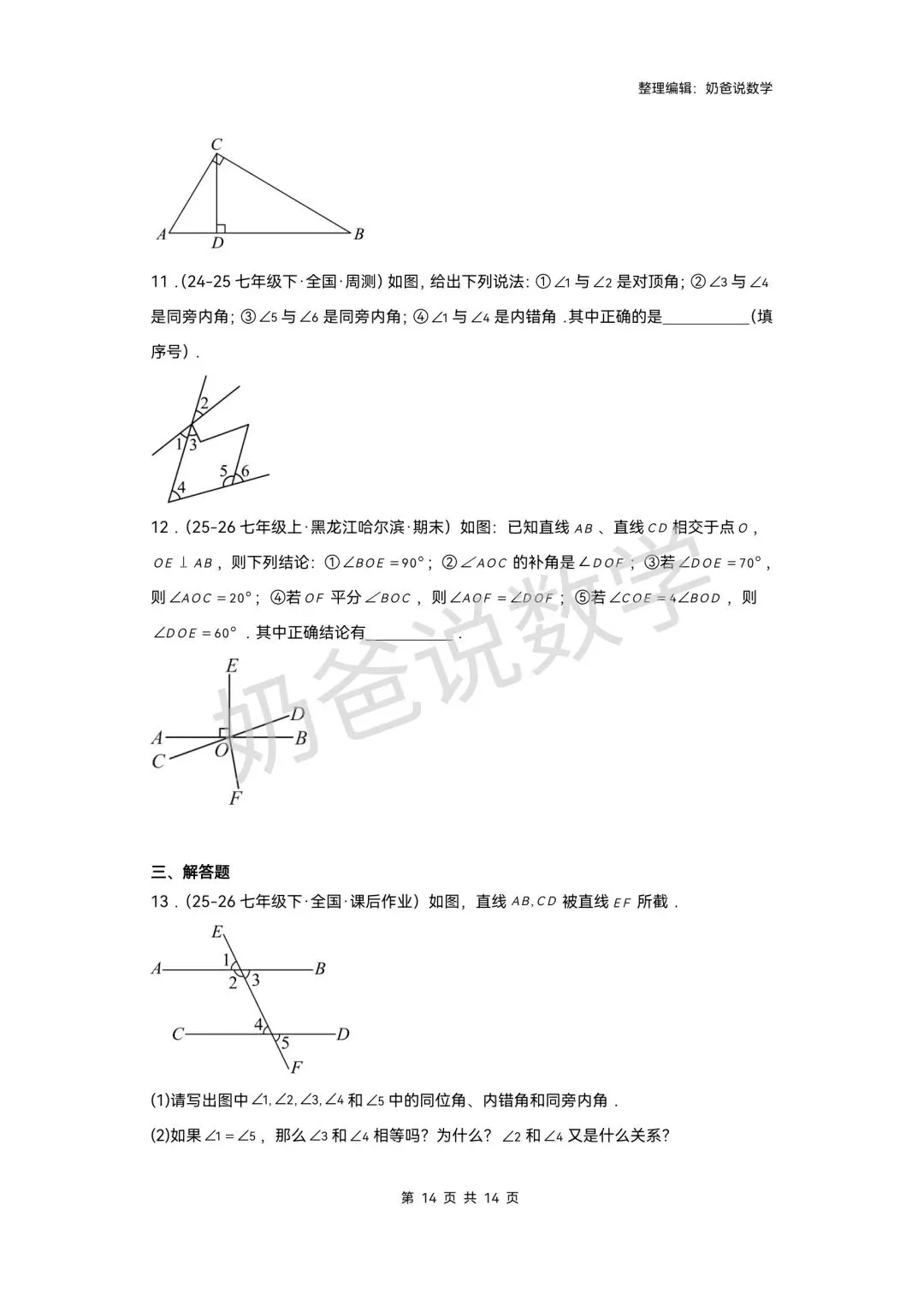 >寒假预习讲义|七下数学第1讲相交线(含答案)