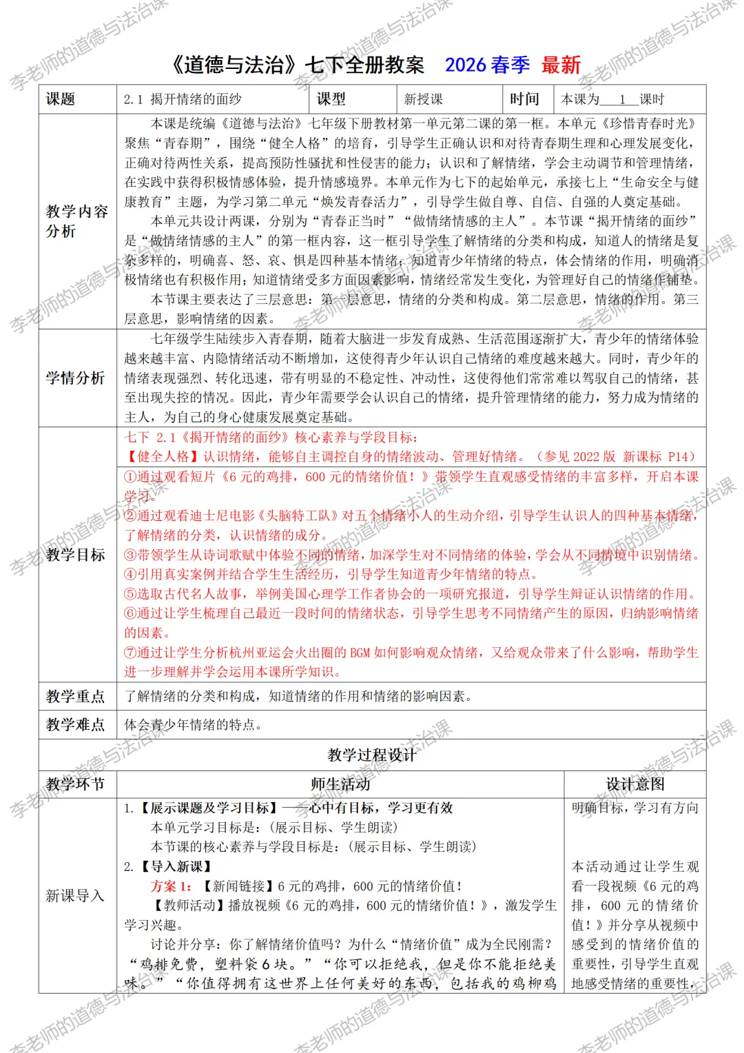 编者的话:李老师将连载2026春季《道德与法治》各年级的精品备课和学习资料。本资料为李老师原创,未经允许,禁止转载!