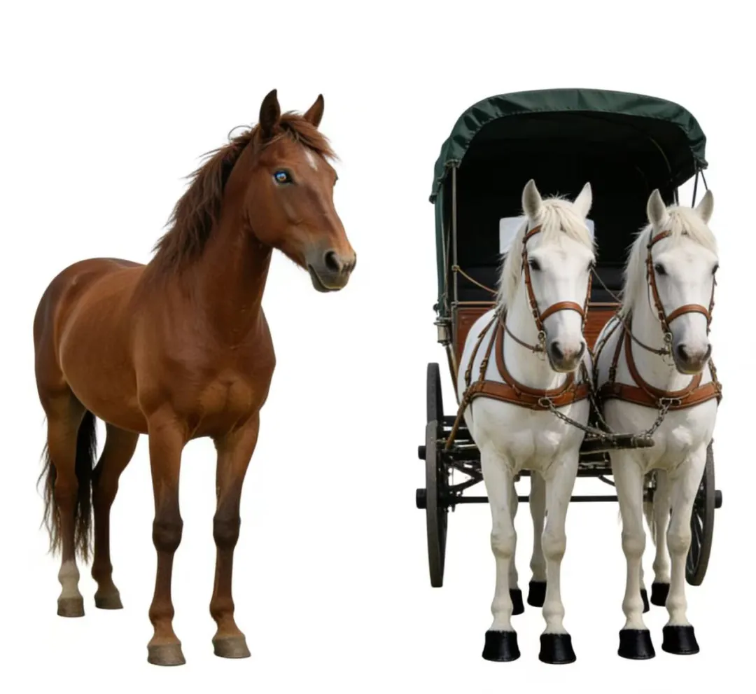 2. 视觉认知:出示毛绒小马玩具和马的实物图,用简单的语言描述:“这是马,有四条腿、长长的尾巴、还有鬃毛(轻轻抚摸玩具的鬃毛)”。引导孩子观察马的颜色(棕色、黑色为主),可让孩子触摸玩具的柔软质感,强化感官记忆。