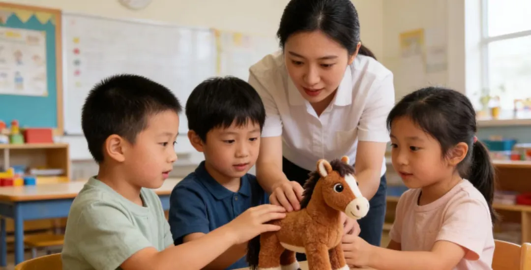 3. 针对语言障碍儿童:弱化“跟读词汇”要求,改为用手势配合发音(如说“马”时指向小马玩具),鼓励孩子用点头、指认的方式回应;祝福环节可设计简单的动作祝福(如模仿小马跑的动作),替代语言表达。