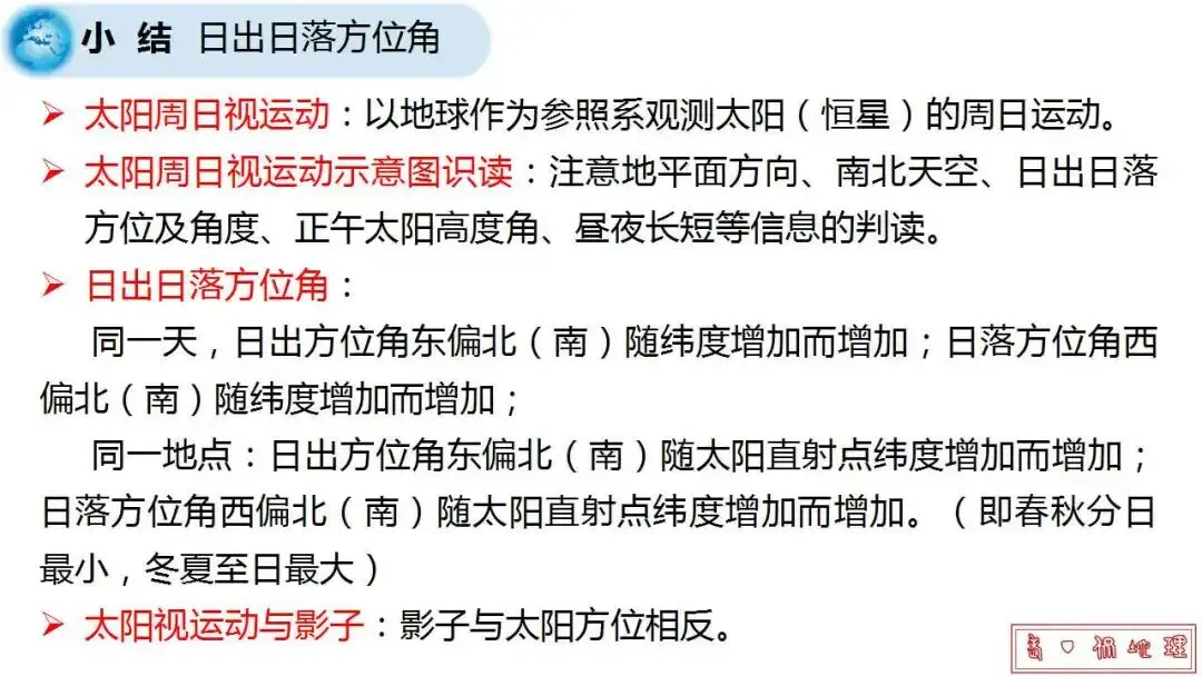 微专题课件:太阳视运动与影子,解决地理难点