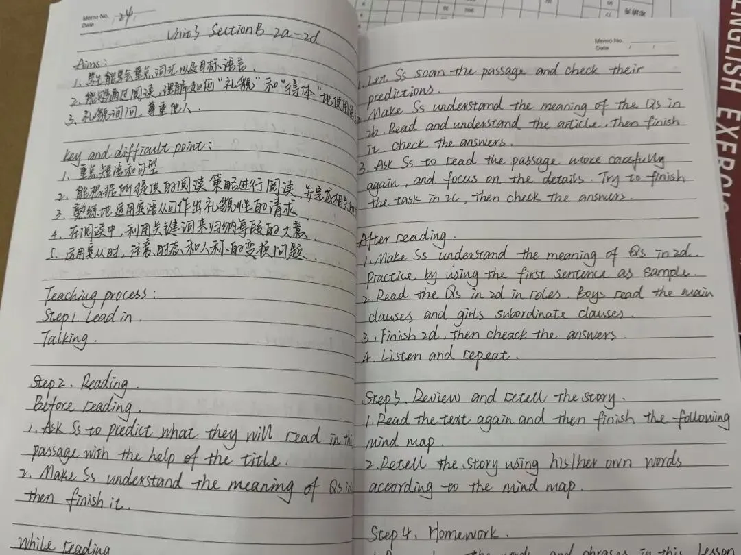 教案是课堂教学的蓝图,更是教师专业素养的直观体现。此次检查中,教师们的教案备写一如既往的详实,他们深入剖析课堂教学得失,既有对成功之处的提炼,也有对不足之处的反思改进,体现了教师们不断探索、精益求精的教学态度。