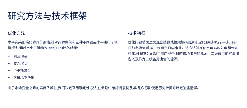 核心研究通过混合整数线性规划(MILP)建立优化模型,结合 2017 年 6 类不同水电、风电、电价情景数据模拟 VPP 运营。结果显示,VPP 可使系统不平衡减少 16.2%-16.3%,平均利润增长 0.9%,抽水蓄能在补偿不平衡中贡献显著;预测误差对盈利影响较小(波动 0.8%-1%),验证了 VPP 运营稳定性。