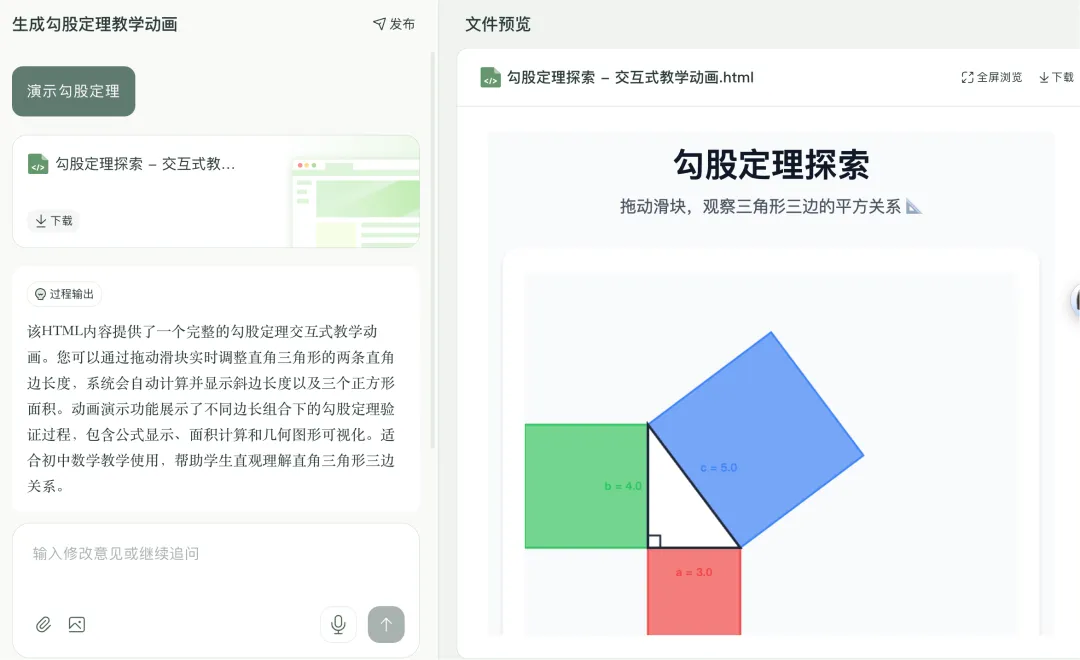 不仅仅是生成文字,而是生成可交互、可演示的 HTML 教学动画。