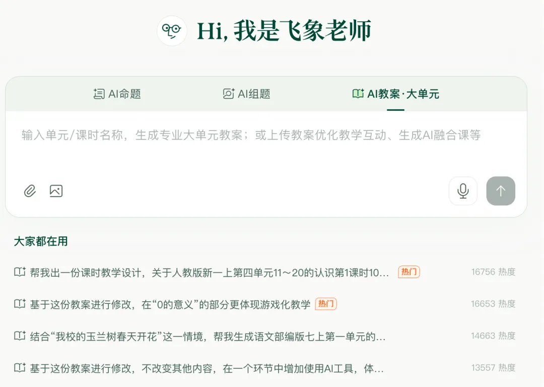 还有几个比较有特色的功能,比如 AI命题、AI组题、以及AI大单元教案。