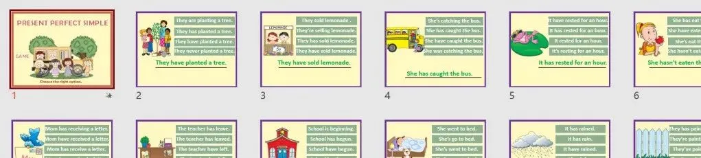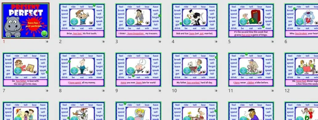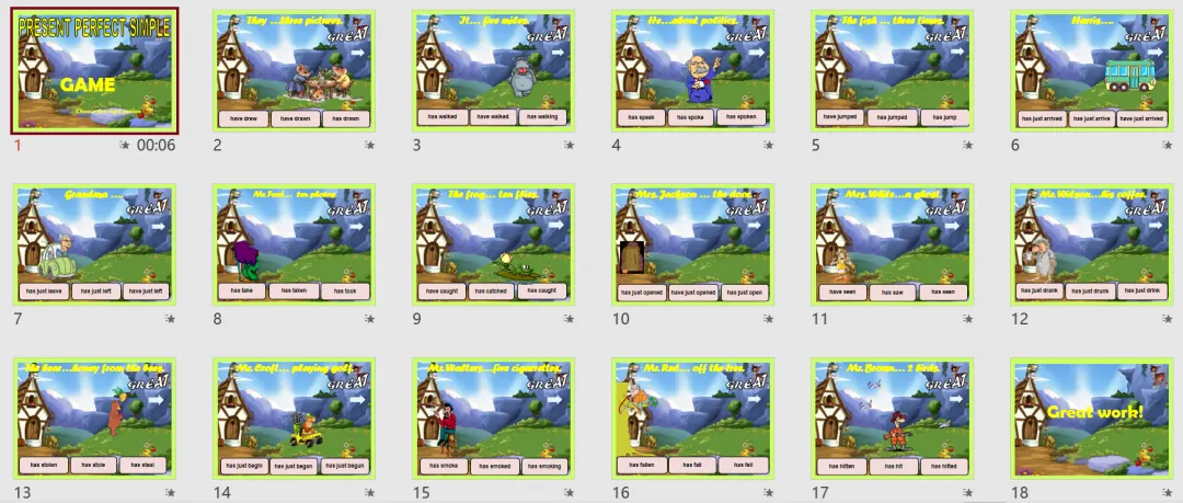 这套时态PPT课件,来自外网,包含了5大常用时态,制作上保持了极高的学习趣味性,设计依然精美到爆。互动性强,实用性好,实在无法用语言形容,可以秒杀国内课件太多了!