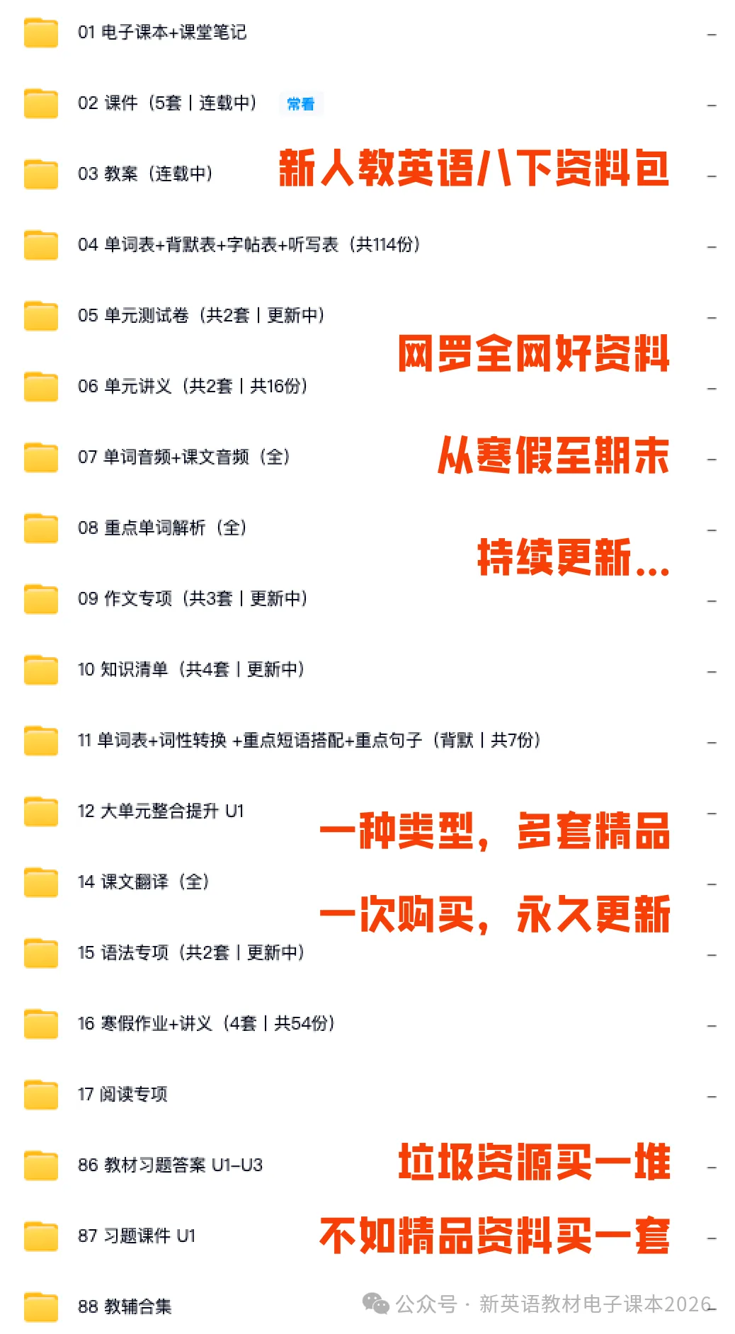 >2026新人教版英语八下(PPT课件+教案+课时练+单元检测+课文MP3+单词背默表+练字帖+核心知识+语法讲练+课堂笔记+教学计划+开学第一课)