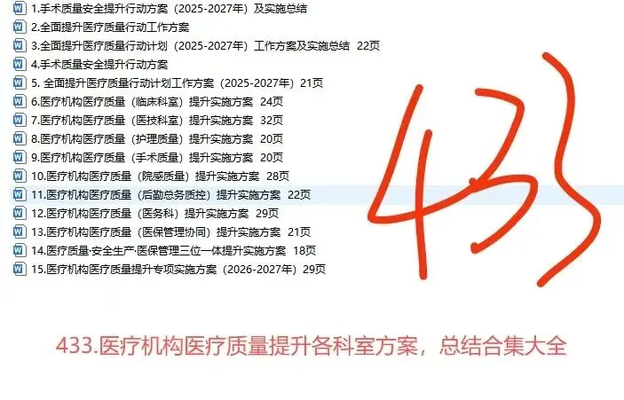 433.医疗机构医疗质量提升各科室方案,总结合集大全.
