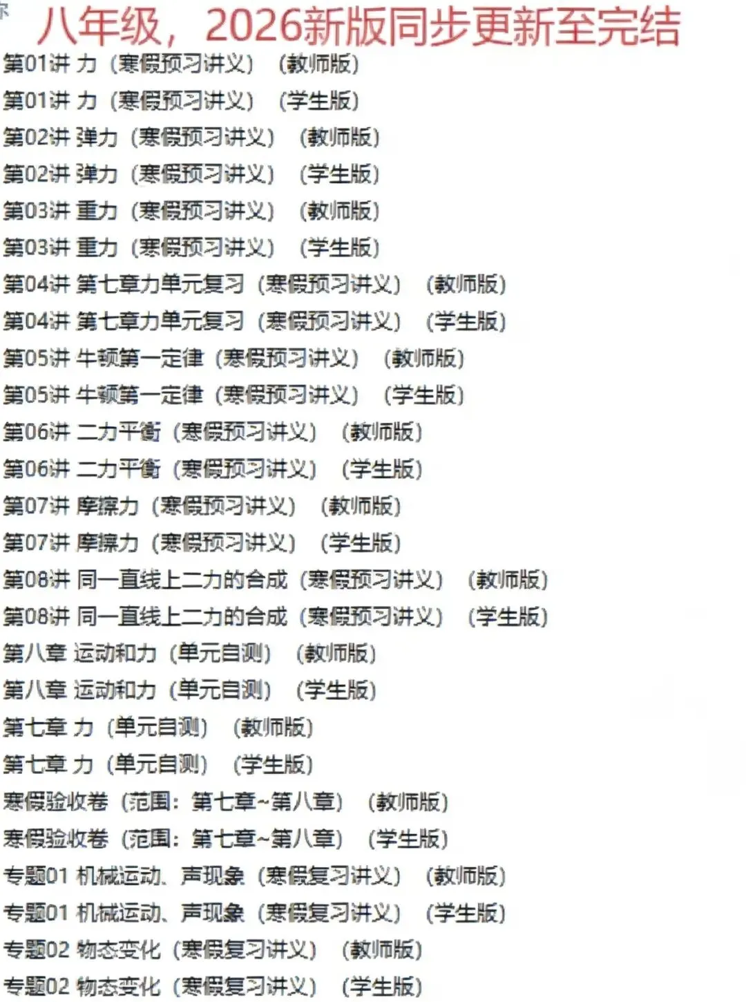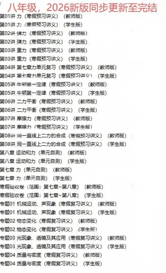 寒假是八年级物理查漏补缺、提前预习的黄金期,这份八年级物理寒假衔接讲义,一站式搞定复习与预习,助力孩子平稳衔接下学期!