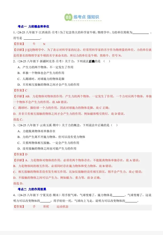 2026春新八下物理寒假预习讲义,人教版电子版可打印【原卷版+ 解析版】