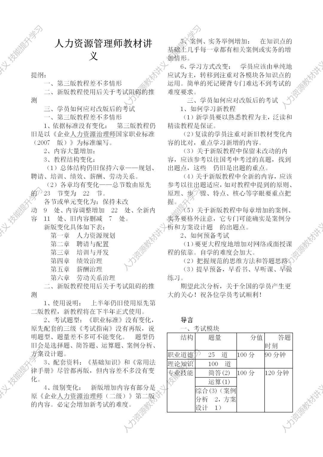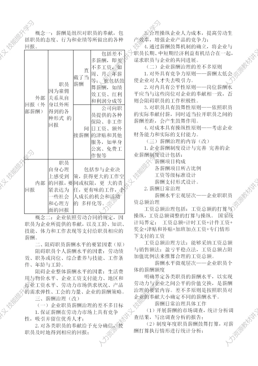 >《企业人力资源管理师》教材讲义重点@职业技能等级证书(复习题)学习