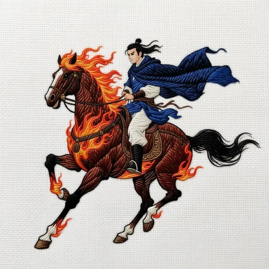 冷知识:据说有的火焰驹绣样里,马驹瞳孔正面看是坚定眼神,侧面观却映出北斗七星。这不是戏曲原有的设定,而是绣娘埋下的密码:即便在最黑暗的夜奔中,义士的方向感来自天地良心。