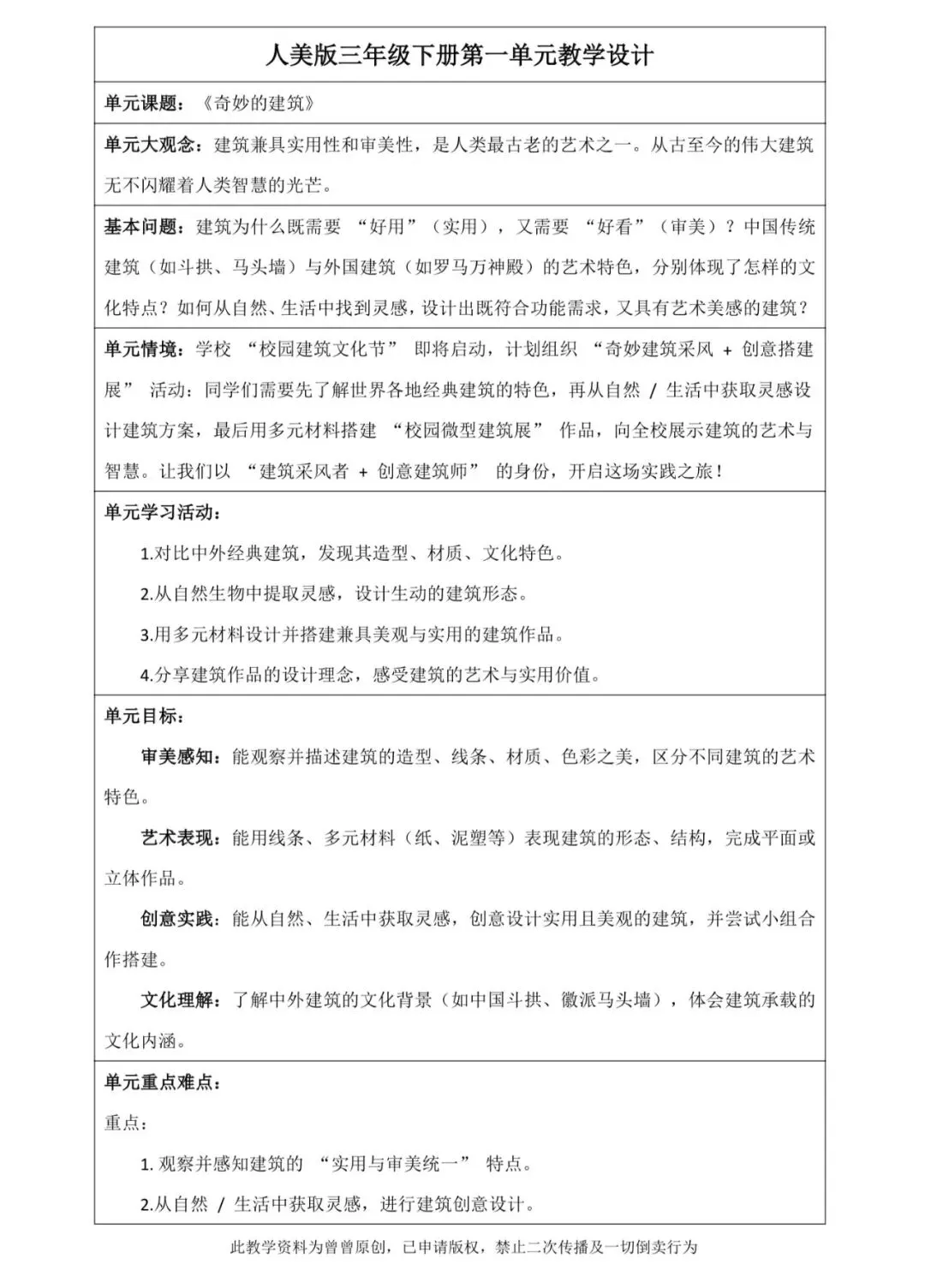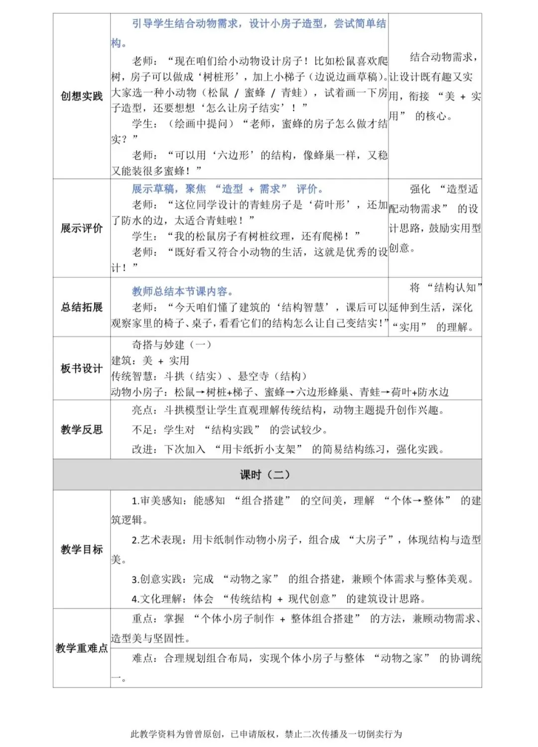 2.生动的建筑 | 了解经典建筑的造型来源。根据所学知识为海洋里的小动物设计一座美丽的海底宫殿。 | 2 |