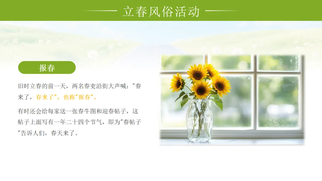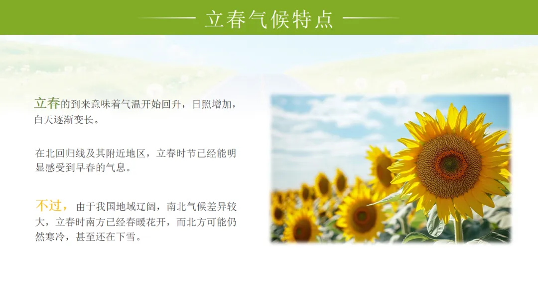 立春的到来意味着气温开始回升,日照增加,白天逐渐变长。