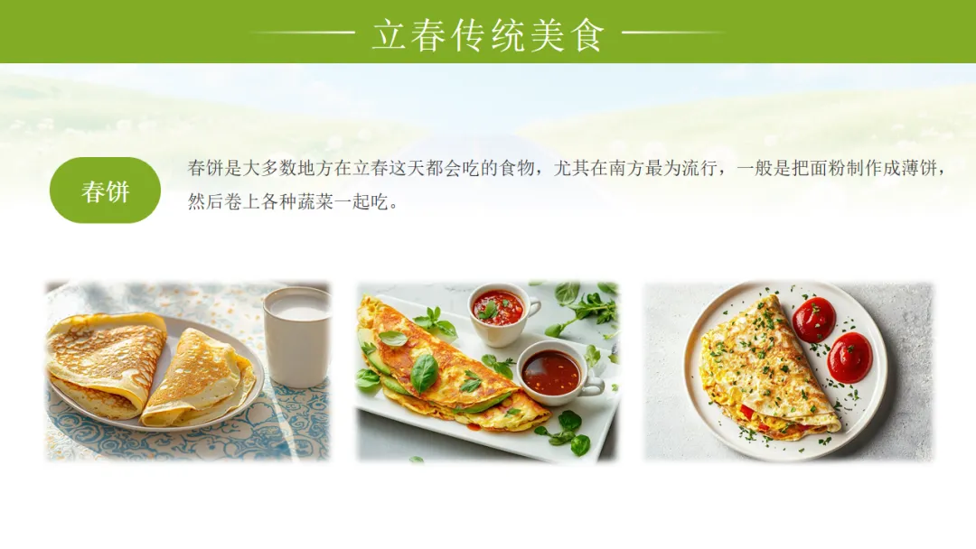 春饼是大多数地方在立春这天都会吃的食物,尤其在南方最为流行,一般是把面粉制作成薄饼,然后卷上各种蔬菜一起吃。