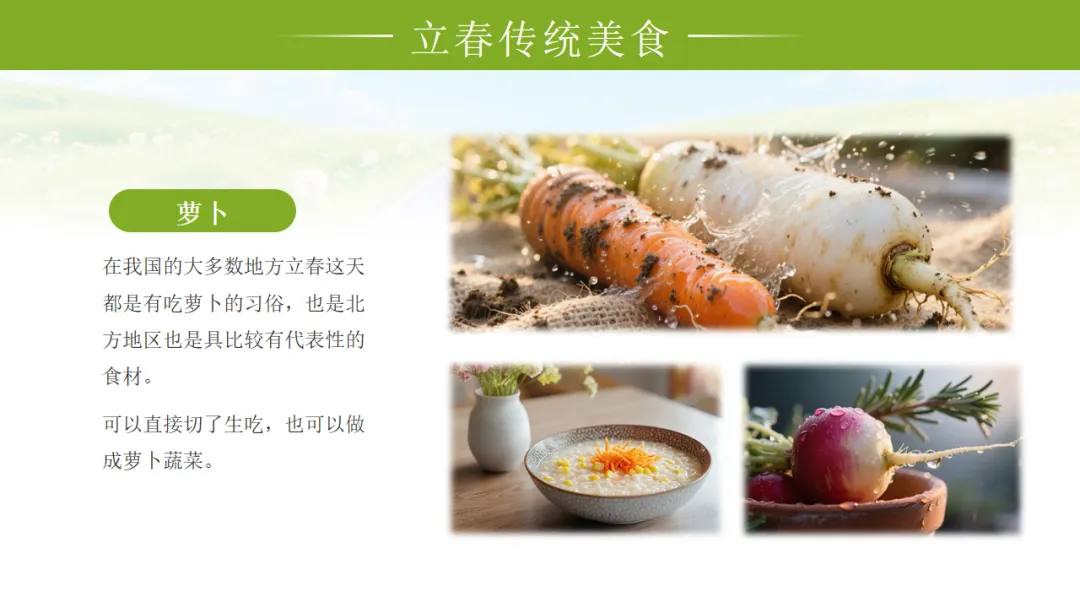 萝卜在我国的大多数地方立春这天都是有吃萝卜的习俗,也是北方地区也是具比较有代表性的食材。