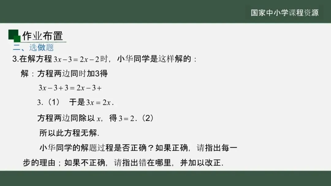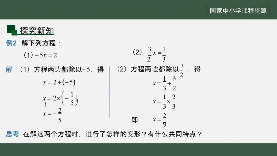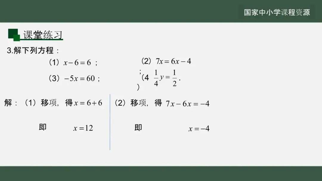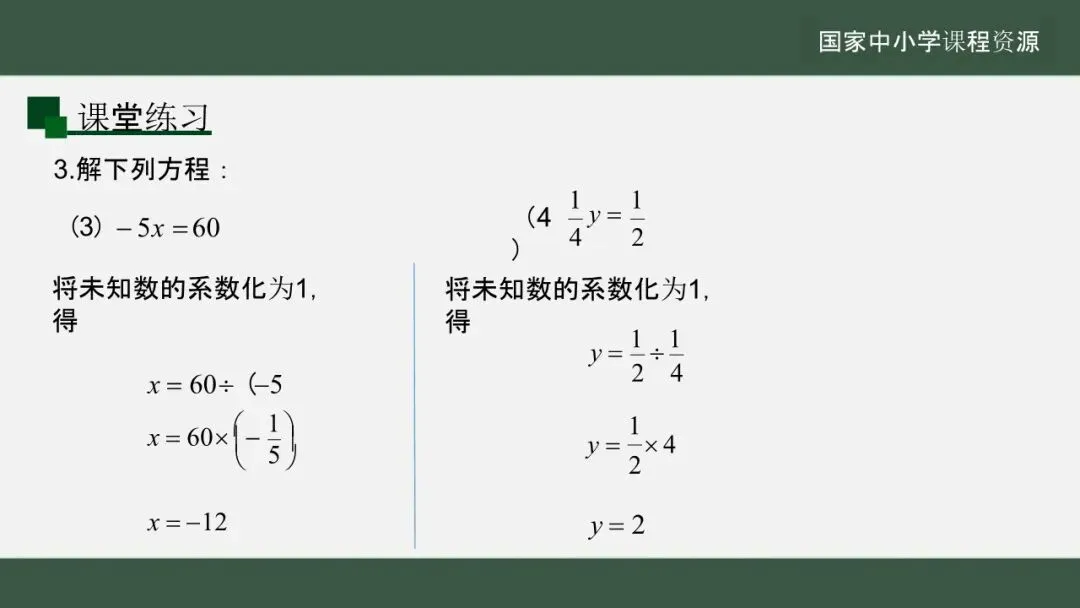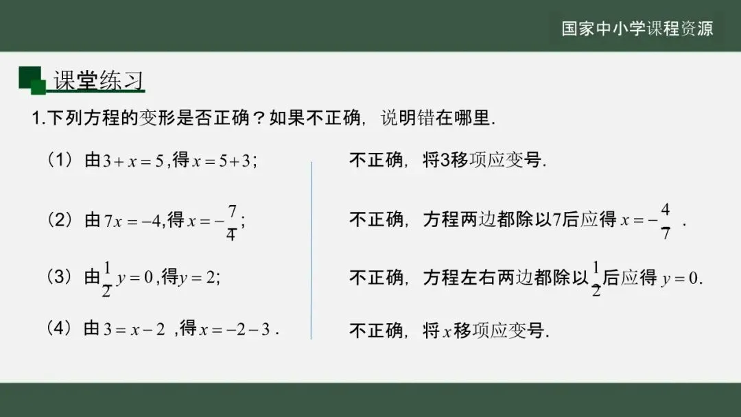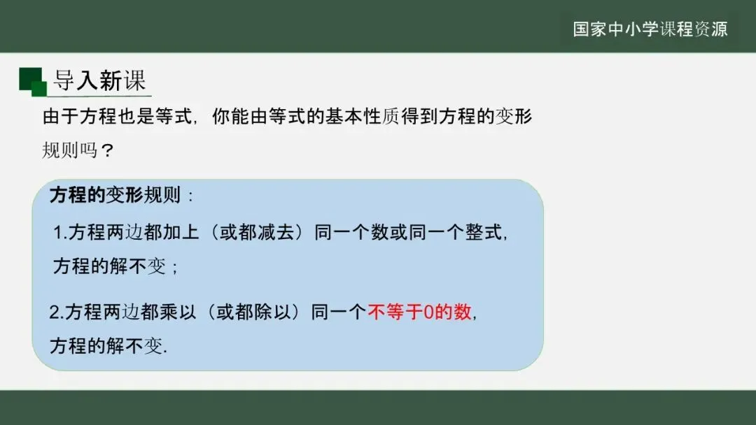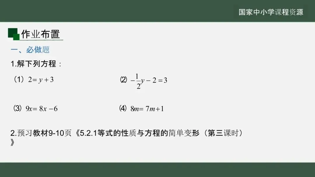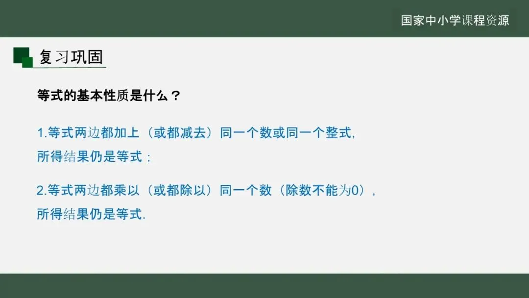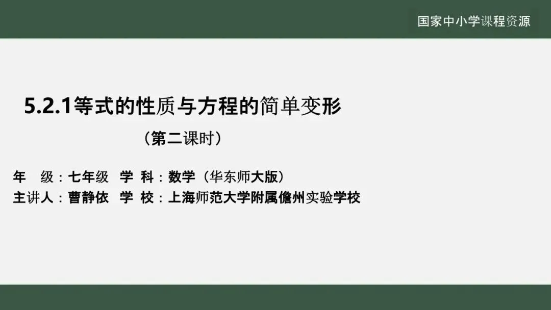 当前位置:首页>课件>【教学课件】(新教材)华师大版初中数学七下《5.2.1 等式的性质与方程的简单变形》第二课时