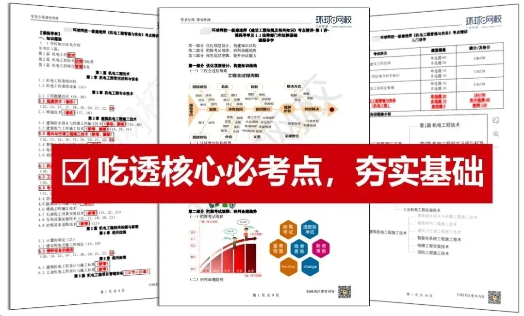 考点精讲课程再搭配咱们的讲义,学习效果更好哦!讲义帮你汇总各科高频考点,系统全面了解一建考试全貌,提高备考效率!