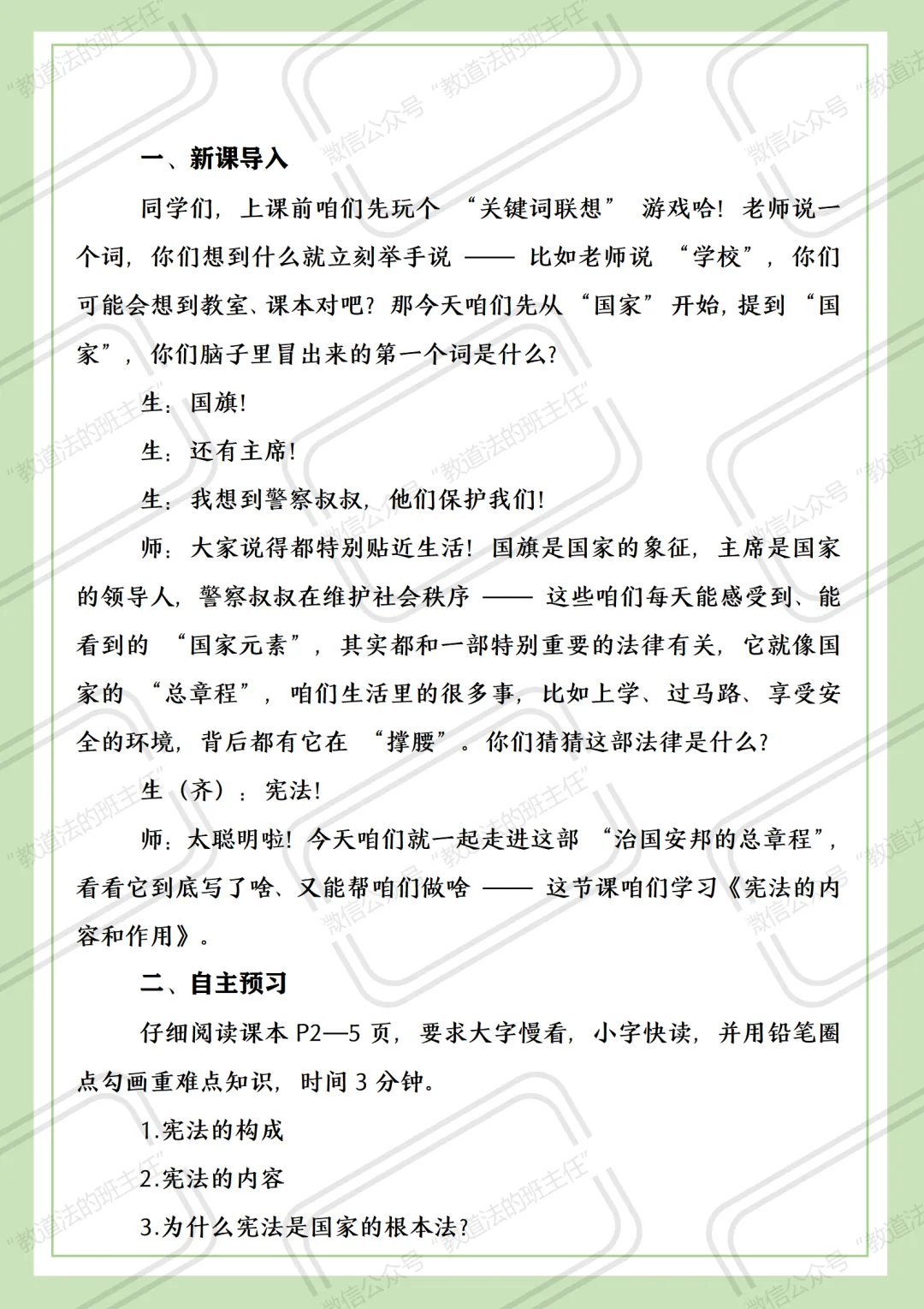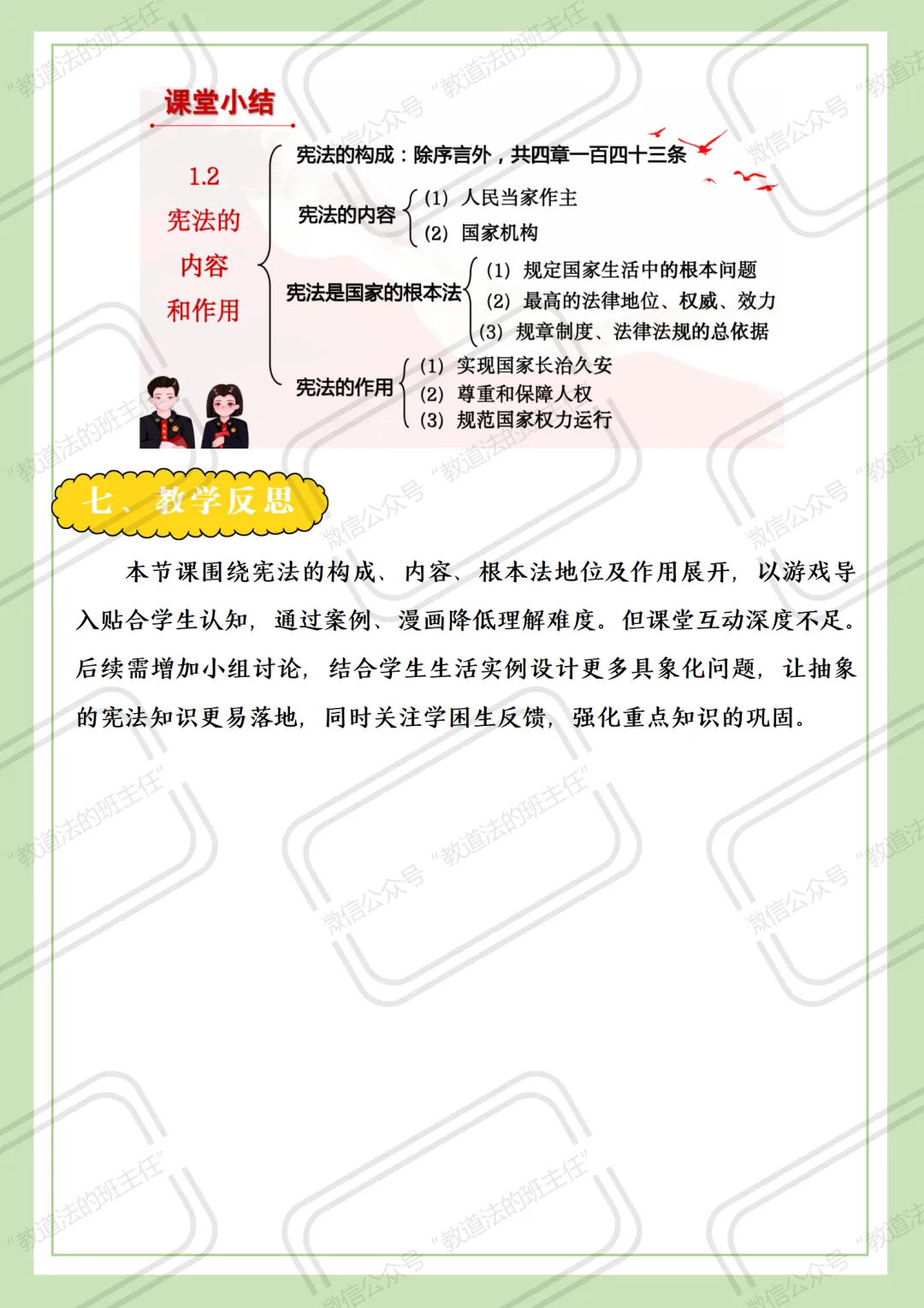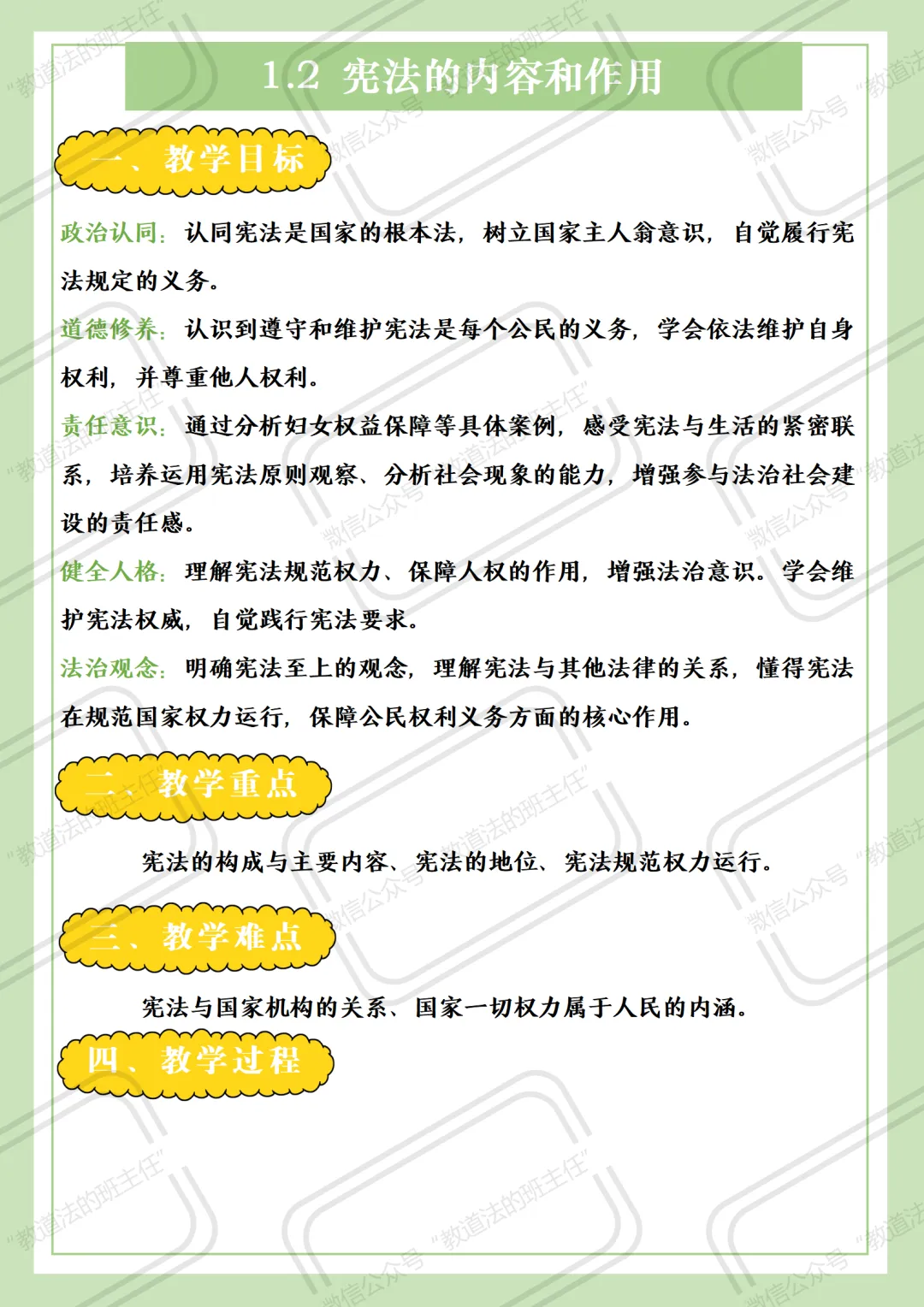 >配套教案|新教材八下道法1.2《宪法的内容和作用》
