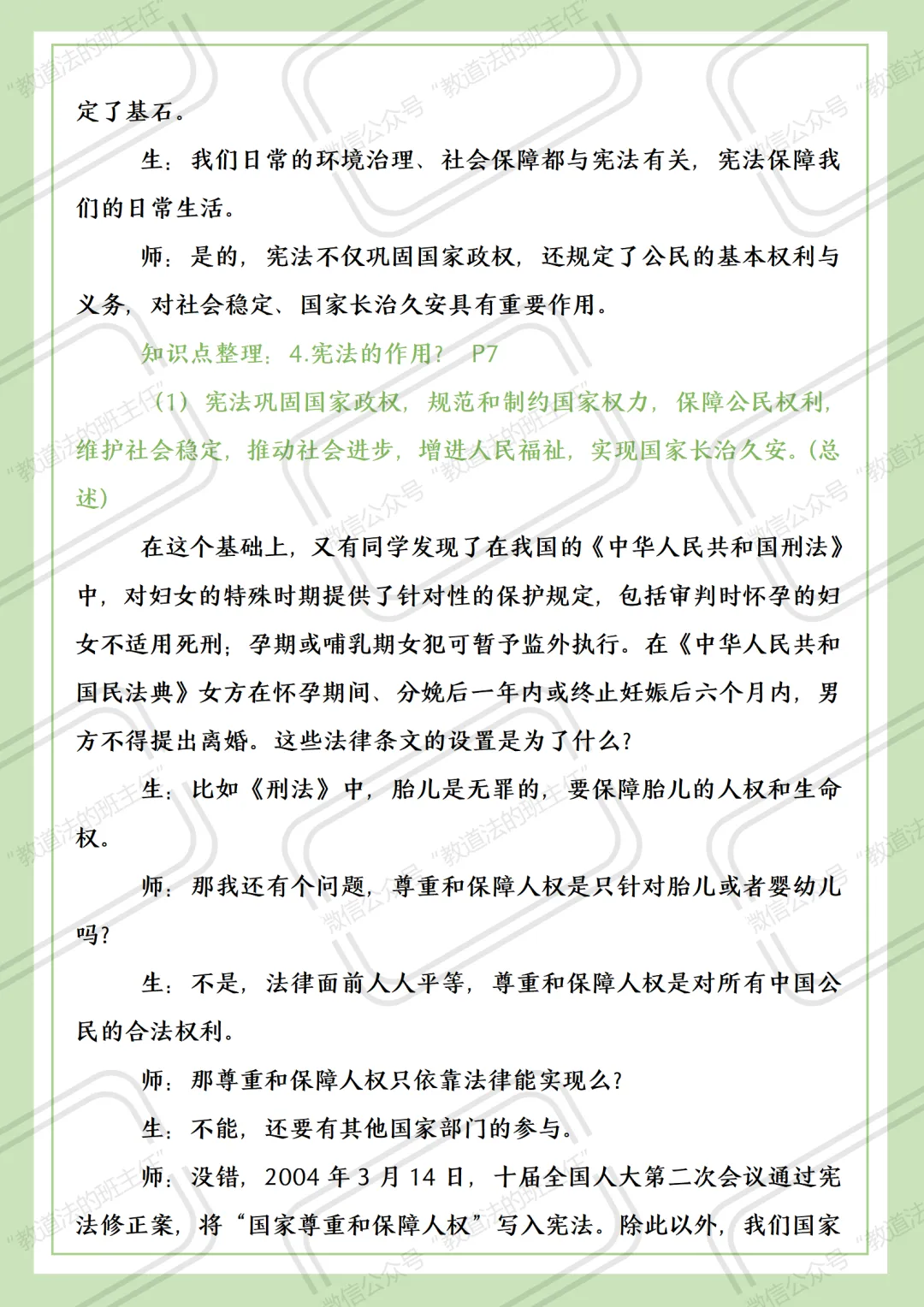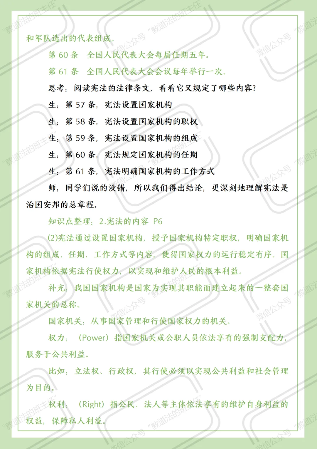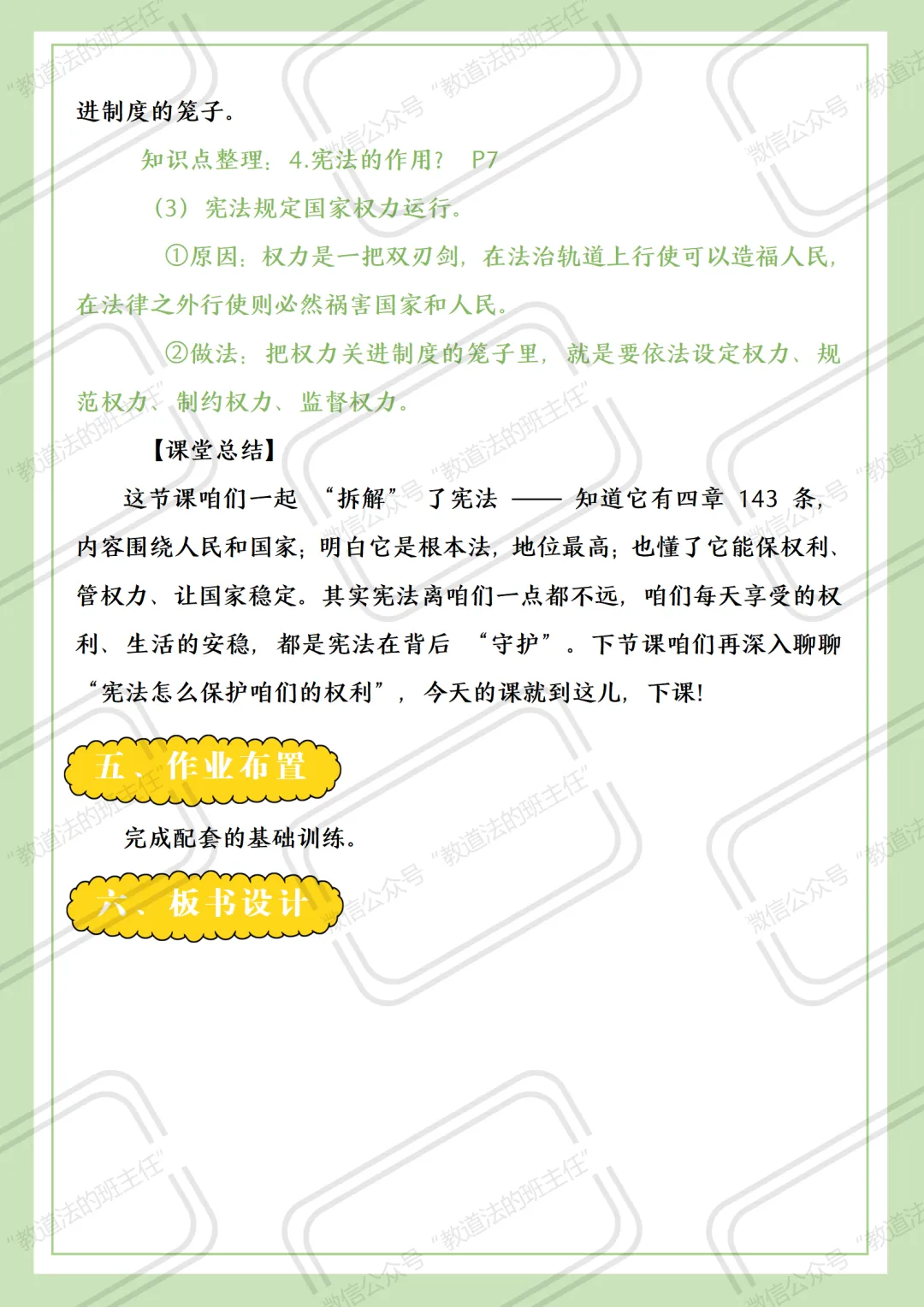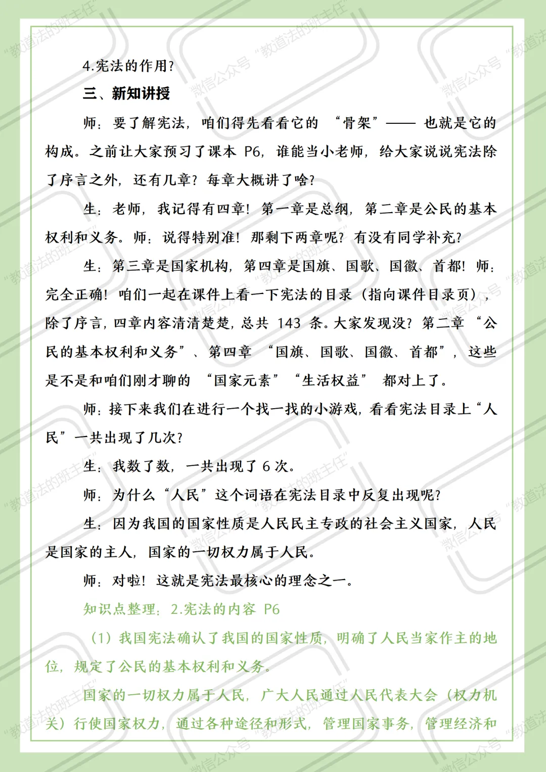 >配套教案|新教材八下道法1.2《宪法的内容和作用》