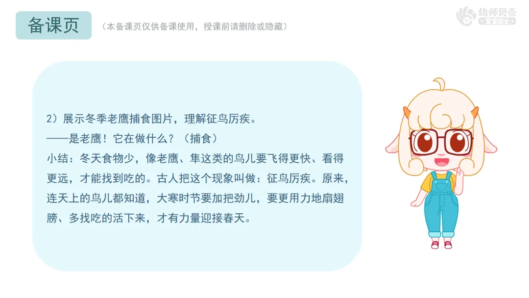 2)展示冬季老鹰捕食图片,理解征鸟厉疾。