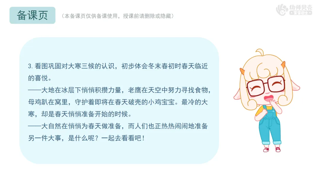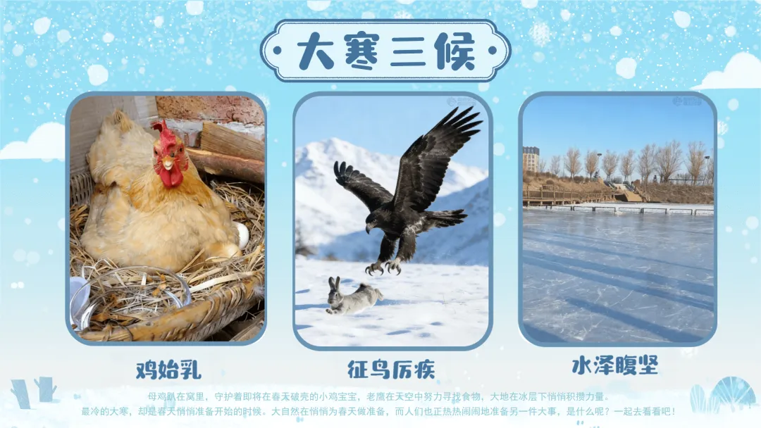 二、了解大寒三候,体会冬末春初时春天临近的喜悦。