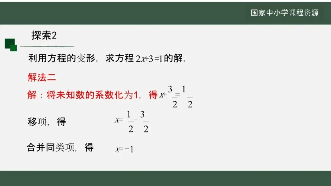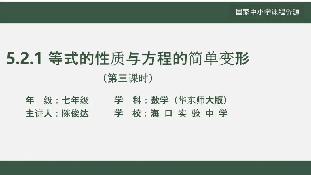 当前位置:首页>课件>【教学课件】(新教材)华师大版初中数学七下《5.2.1 等式的性质与方程的简单变形》第三课时