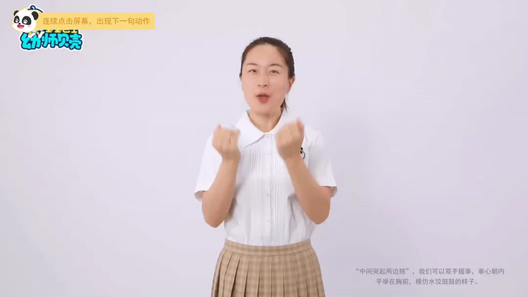 1.分层指导,优化动作学习体验:针对幼儿动作协调性差异,将幼儿分为 “基础组” 和 “提升组”。对基础组幼儿,简化手势动作(如用 “双手合十再打开” 模仿小船,用 “双手握拳上下晃动” 模仿元宝),多进行慢动作示范和手把手指导;对提升组幼儿,鼓励其加入 “捏花边”“舀馅料” 等额外动作,满足不同能力幼儿的发展需求。
