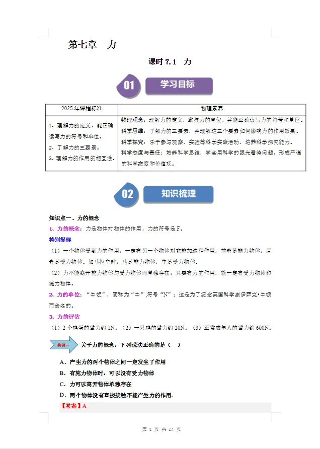 >2026版初中《同步讲义》8年级下册(物理)(人教原卷+解析)可打印(寒假预习)