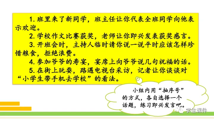 当前位置:首页>课件>PPT课件 口语交际《即兴发言》 (六年级语文下册)