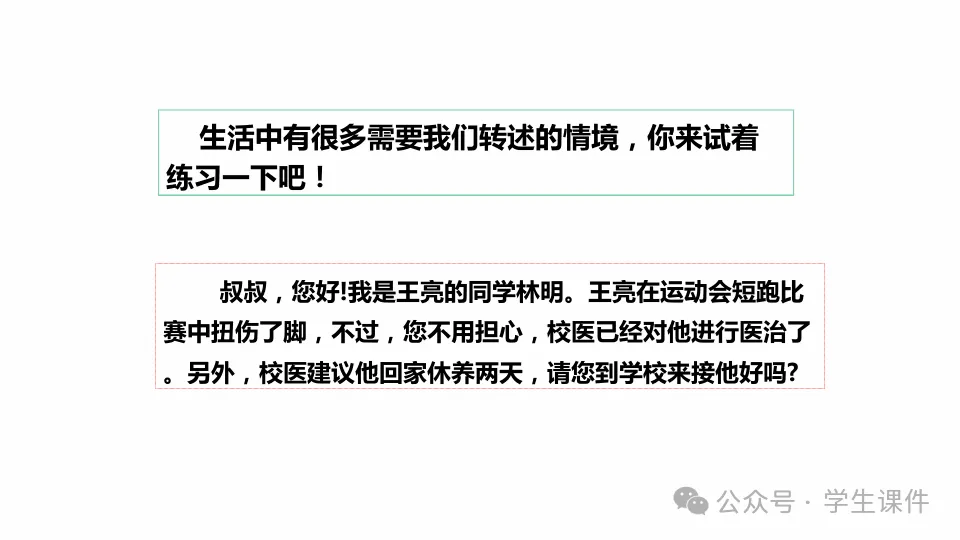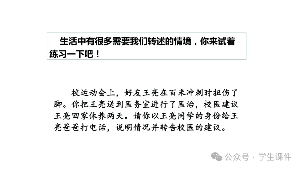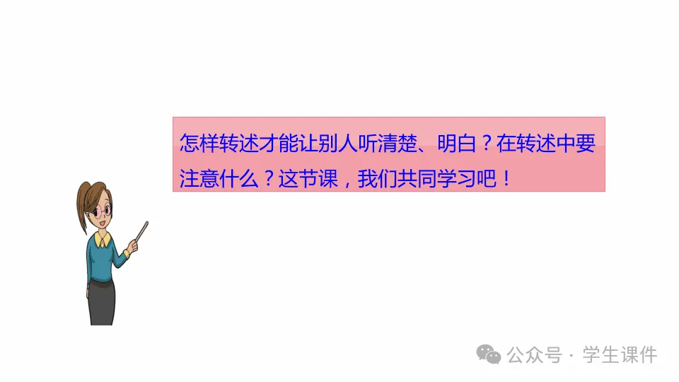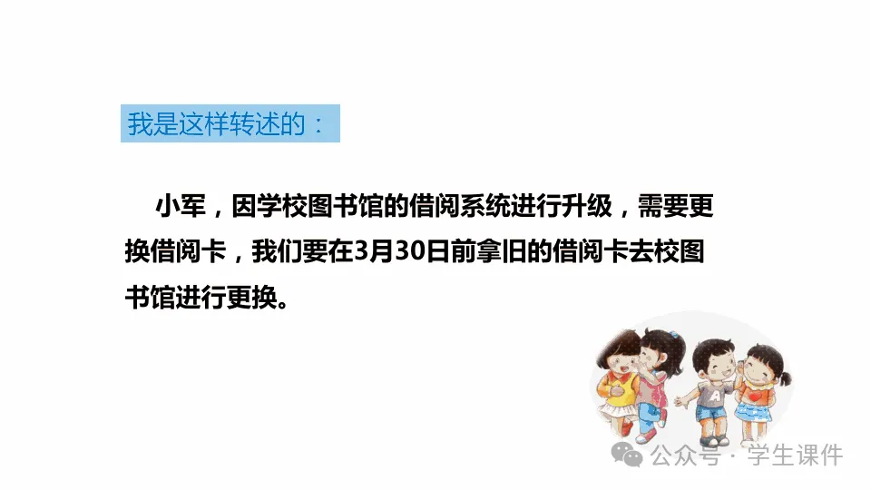 当前位置:首页>课件>PPT课件 口语交际《转述 》(四年级语文下册)