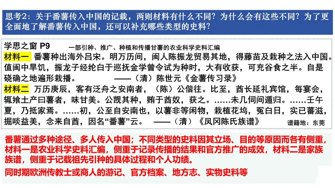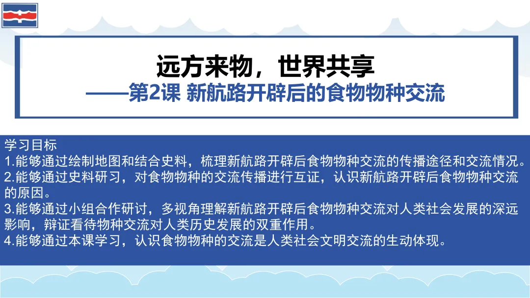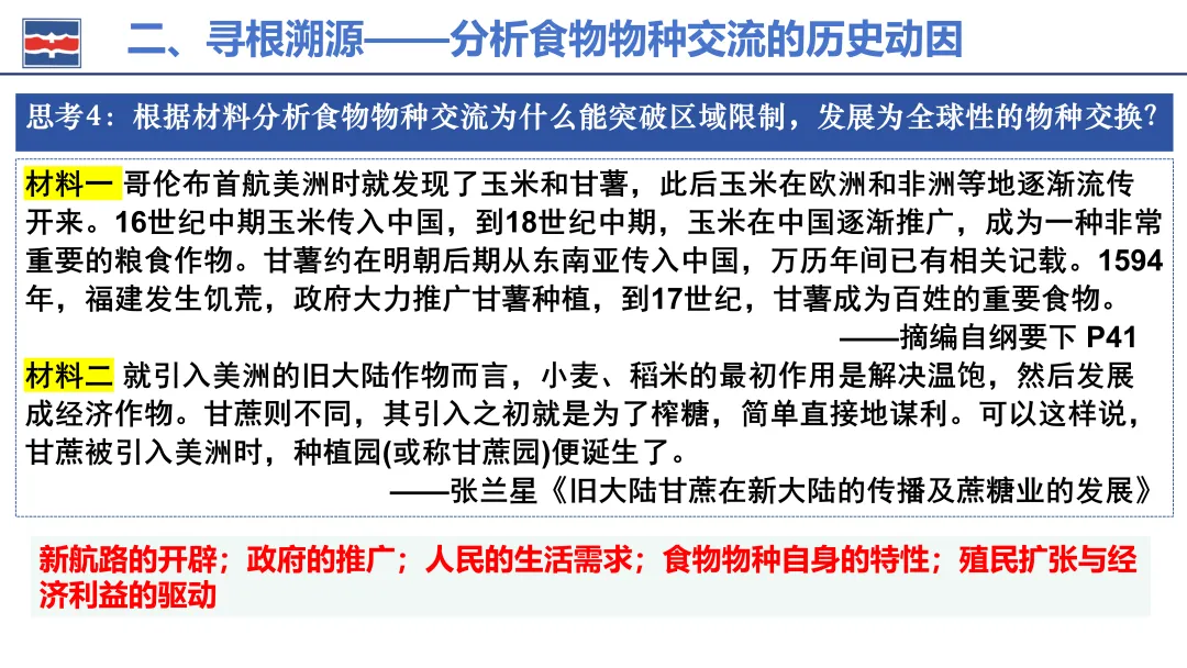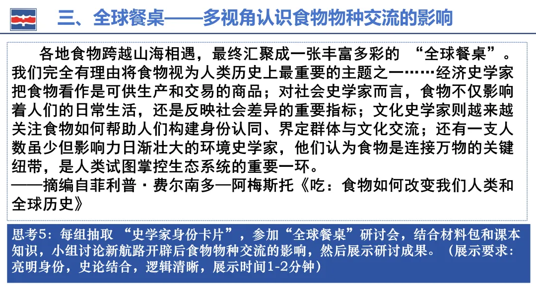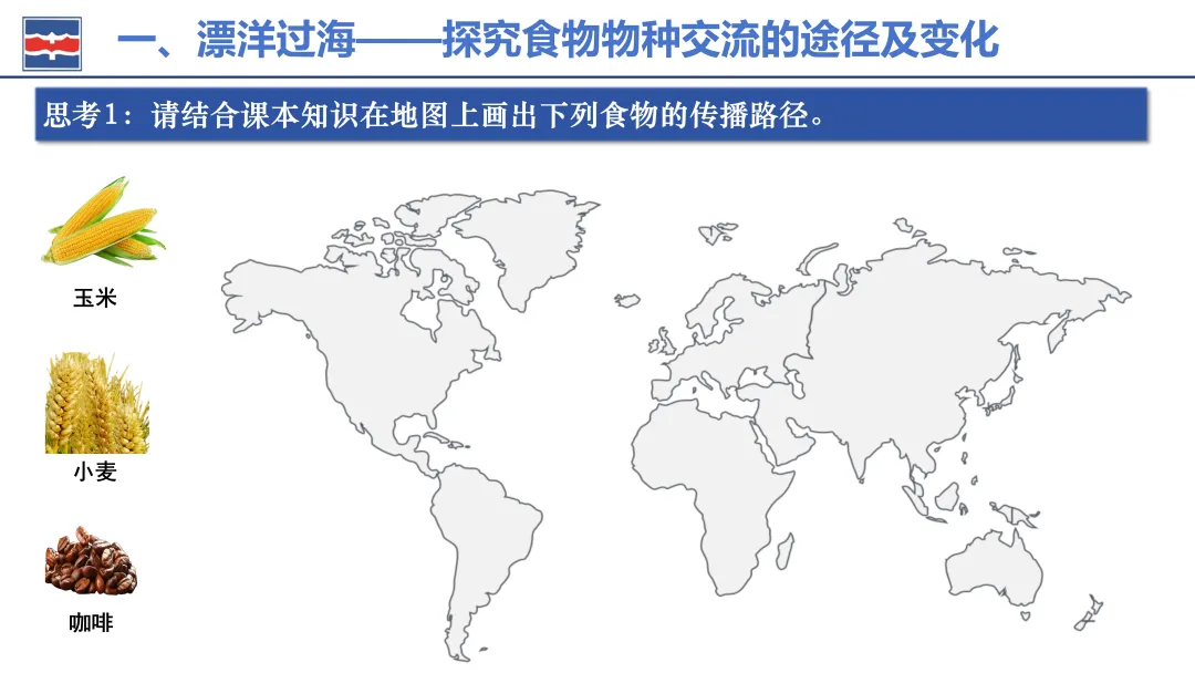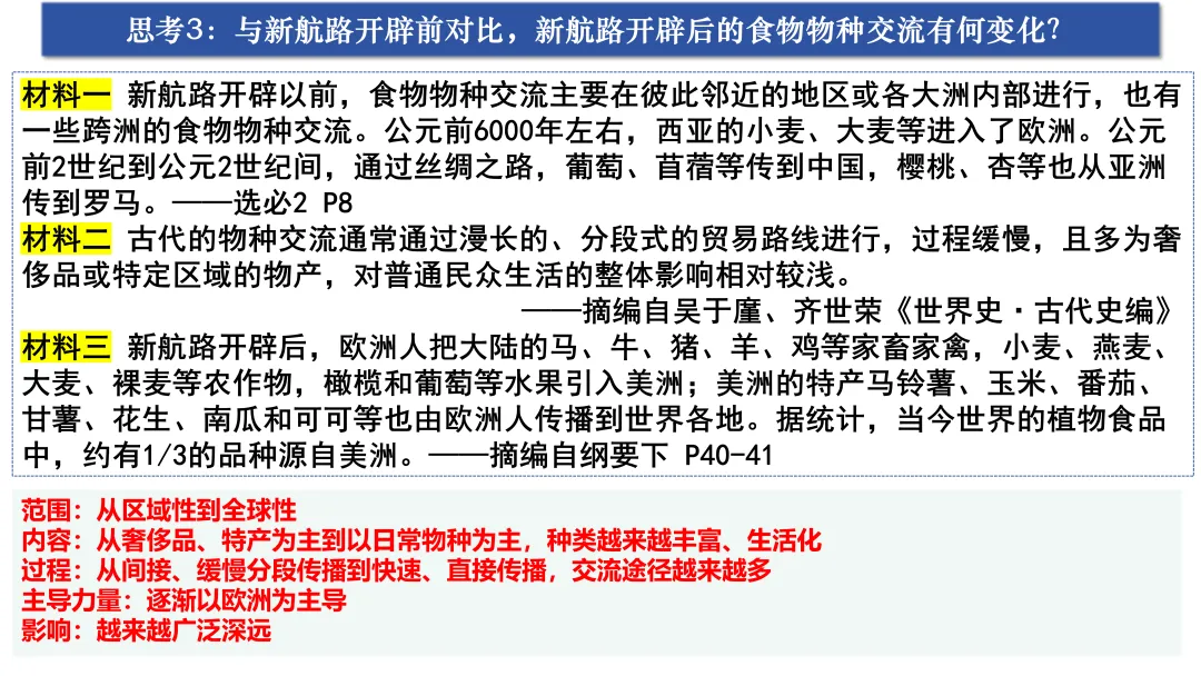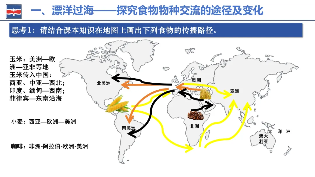 今天推送历史选必2第1单元第2课《新航路开辟后的食物物种交流》的课件,供大家交流研讨,请大家批评指正。如无授权,请勿上传至其他平台或公开出版使用。