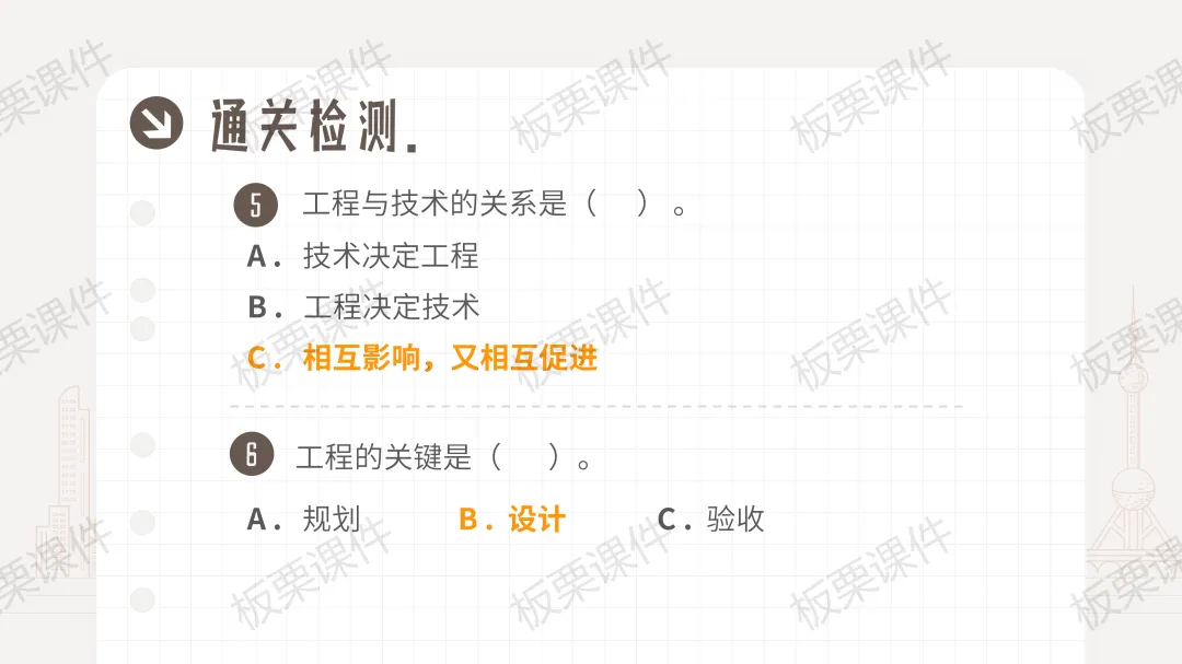 ·设计通关检测题巩固知识,助力学生掌握工程相关核心内容。