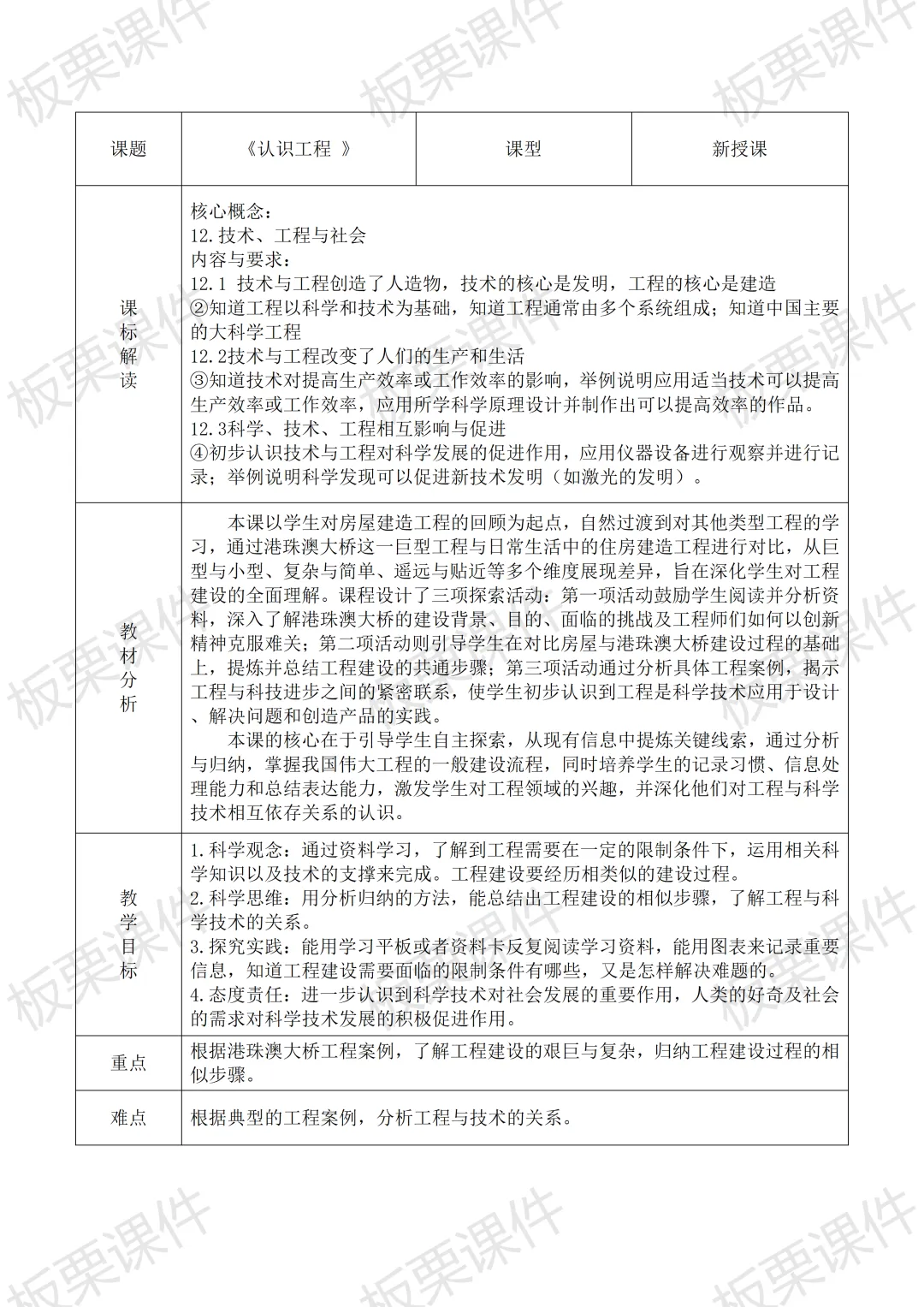 这份课件是来自“板栗课件”教科版六年级下册《认识工程》。