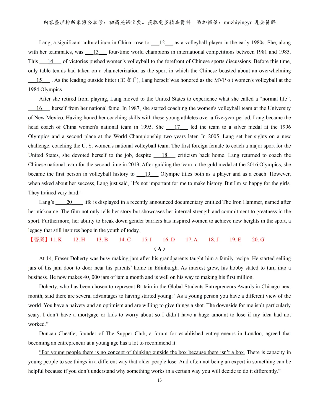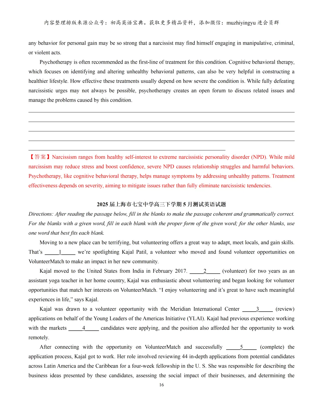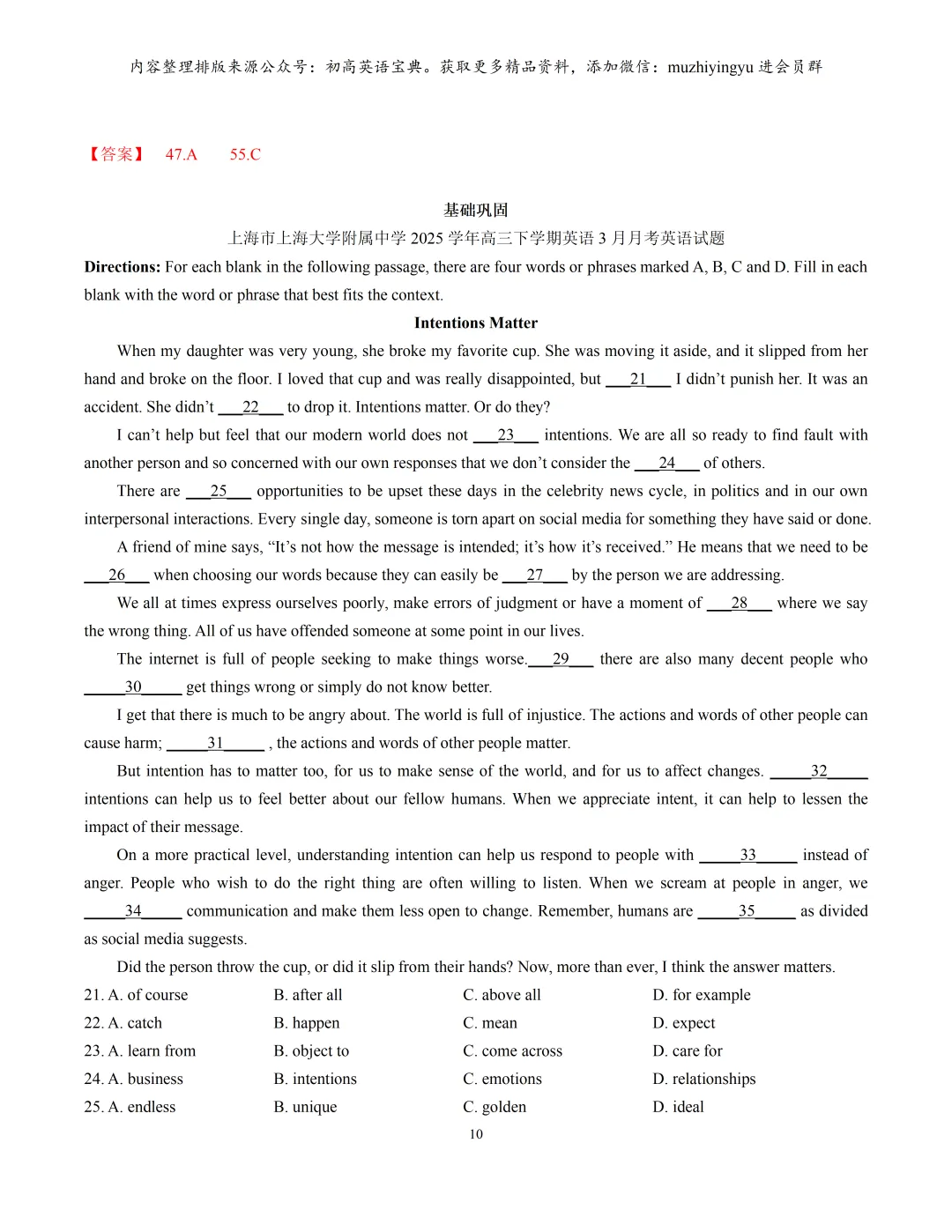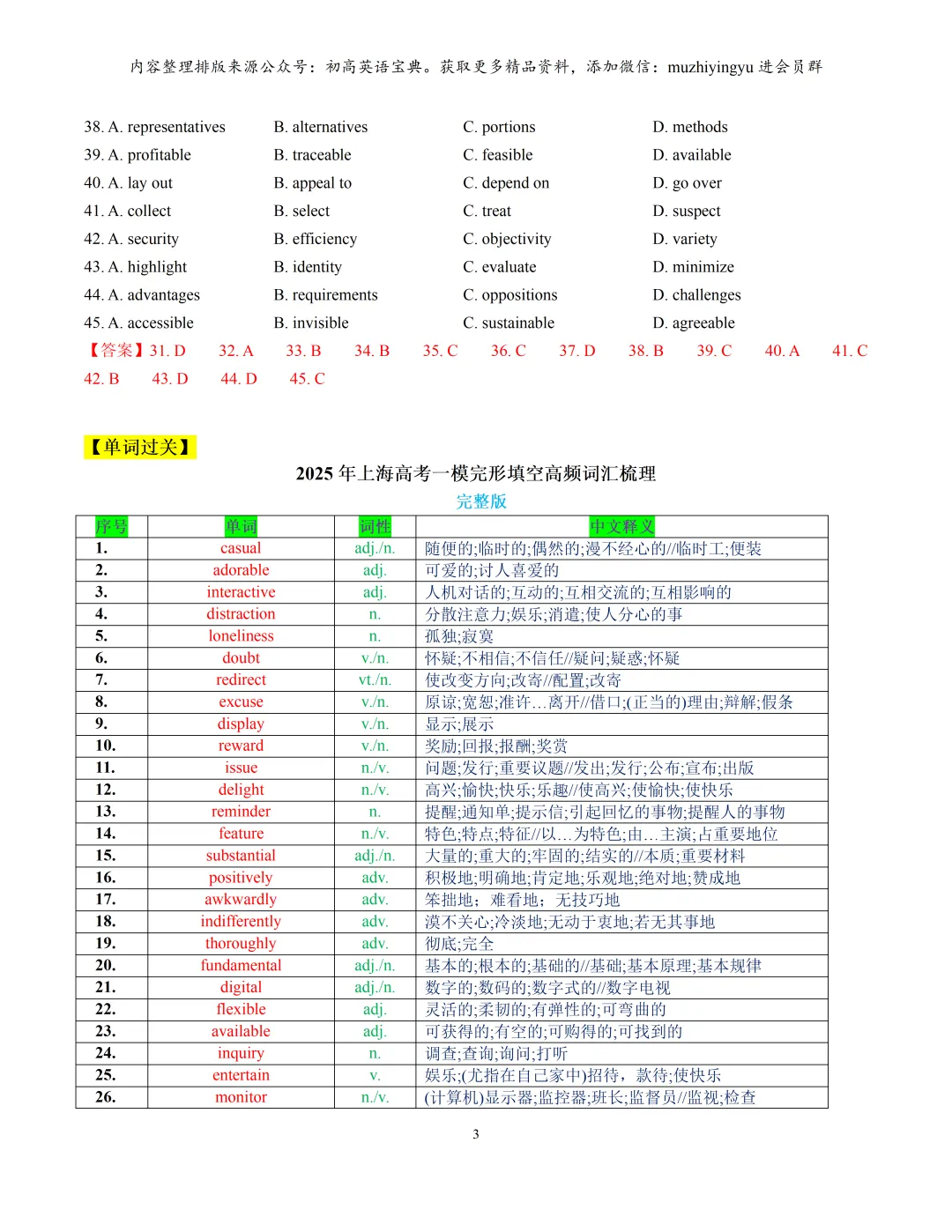 2026年上海高三英语寒假讲义第5&6讲:完形填空专题1-2