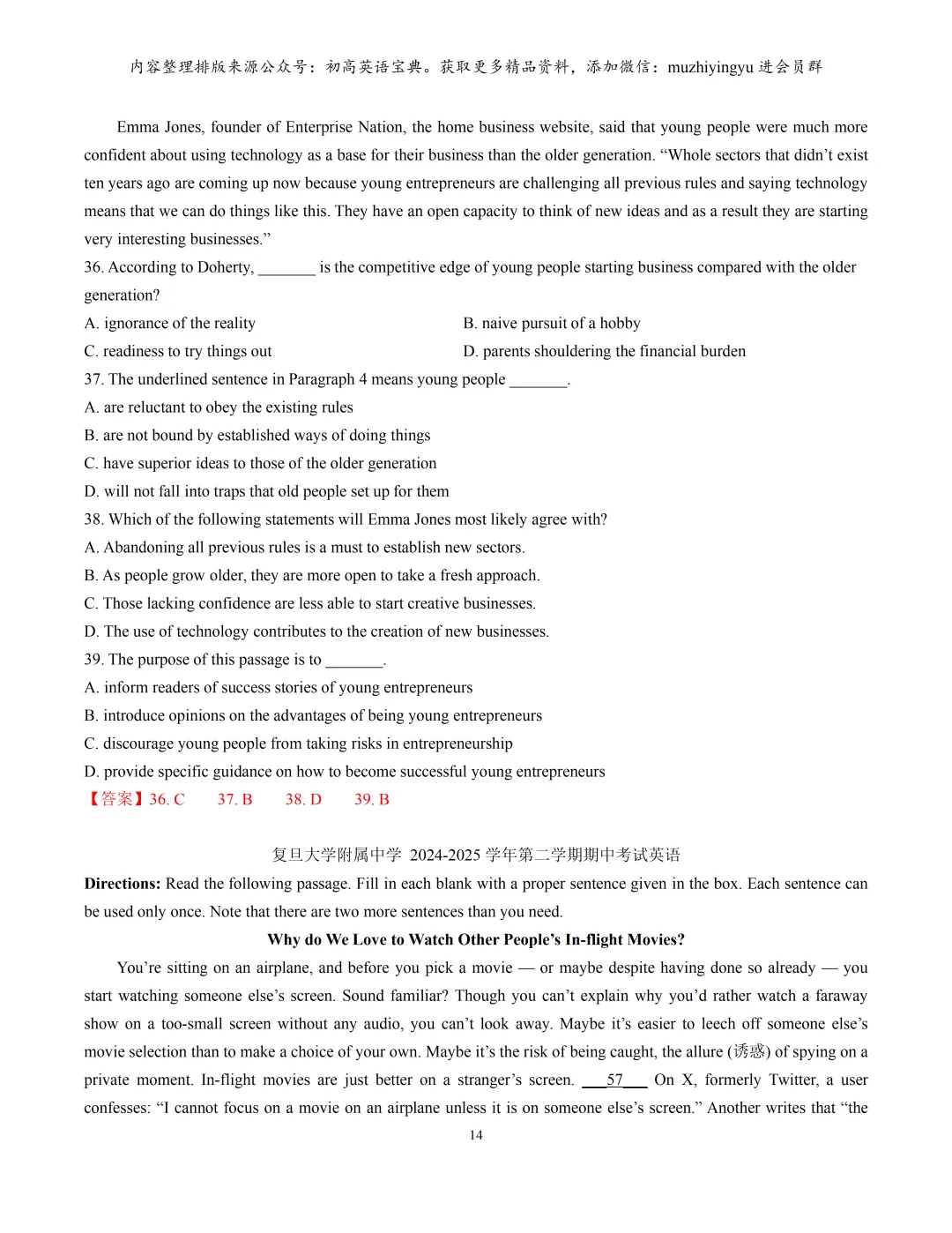 2024-2025学年上海市复附&建平中学等校高一上学期期中考试英语试卷7套
