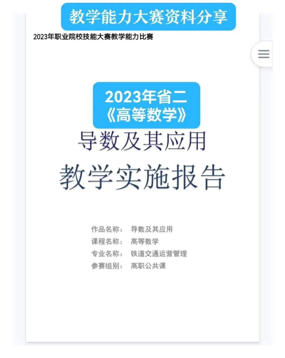 #高等数学 #导数及其应用 #数学大类 #教学能力大赛 #教学能力比赛 #教师教学能力大赛 #教学能力大赛实施报告 #教学能力大赛教案 #中职 #高职